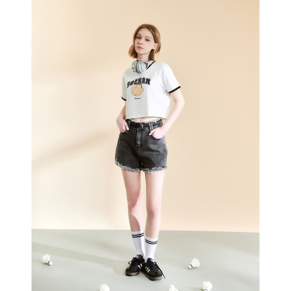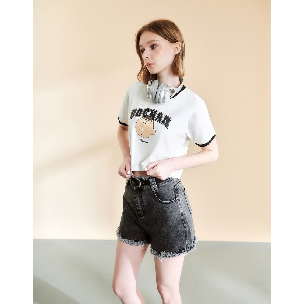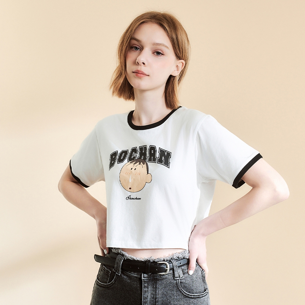 CACO-阿呆涼感撞色短版上衣-女【J2SC031】01白,S|01白,M|01白,LT-shirtscaco_tw