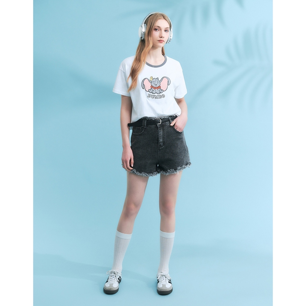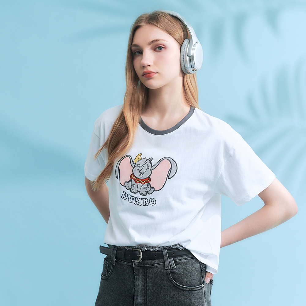 CACO-小飛象螺紋撞色落肩T‧親子款-女【J2DI085】01白,S|01白,MT-shirtscaco_tw