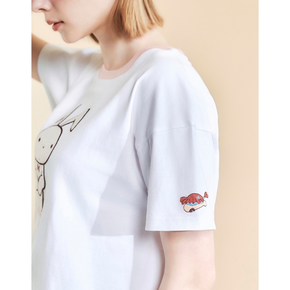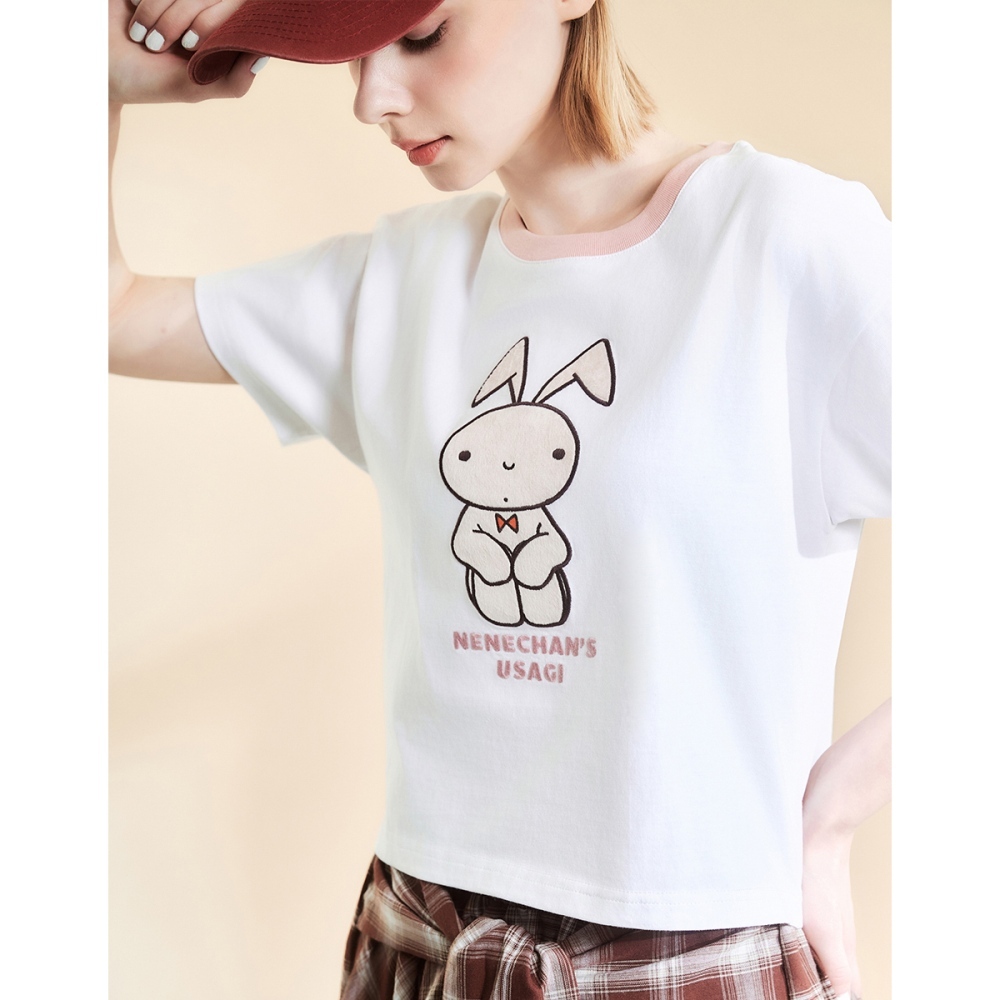 CACO-妮妮兔子貼布上衣-女【J2SC034】02米白,M|02米白,ST-shirtscaco_tw