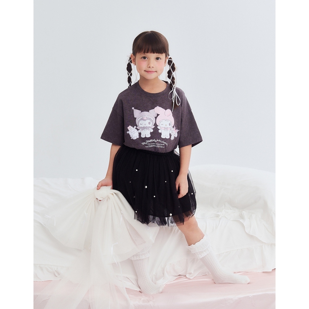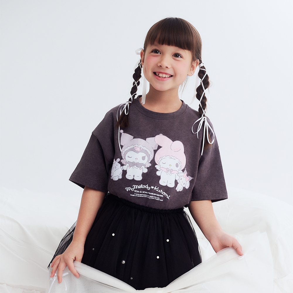 CACO-美樂蒂與酷洛米落肩T‧親子款-童【J3SA066】12深灰,100|12深灰,110|12深灰,120|12深灰,130|12深灰,140|12深灰,150Topscaco_tw