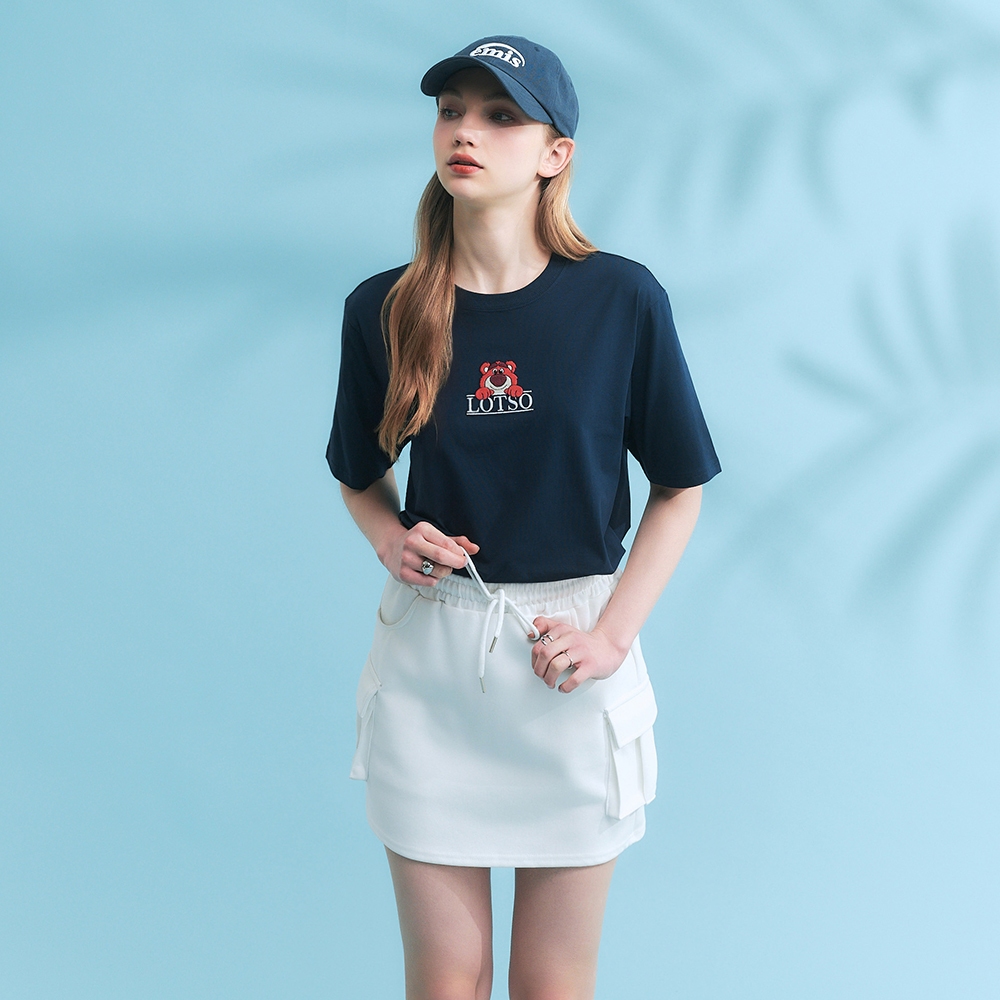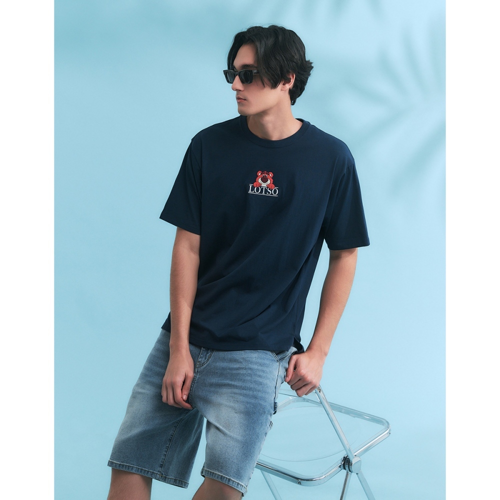CACO-熊抱哥刺繡涼感短T-男女共穿【J1DI550】74丈青,XS|74丈青,S|74丈青,M|74丈青,L|74丈青,XLT-Shirtscaco_tw