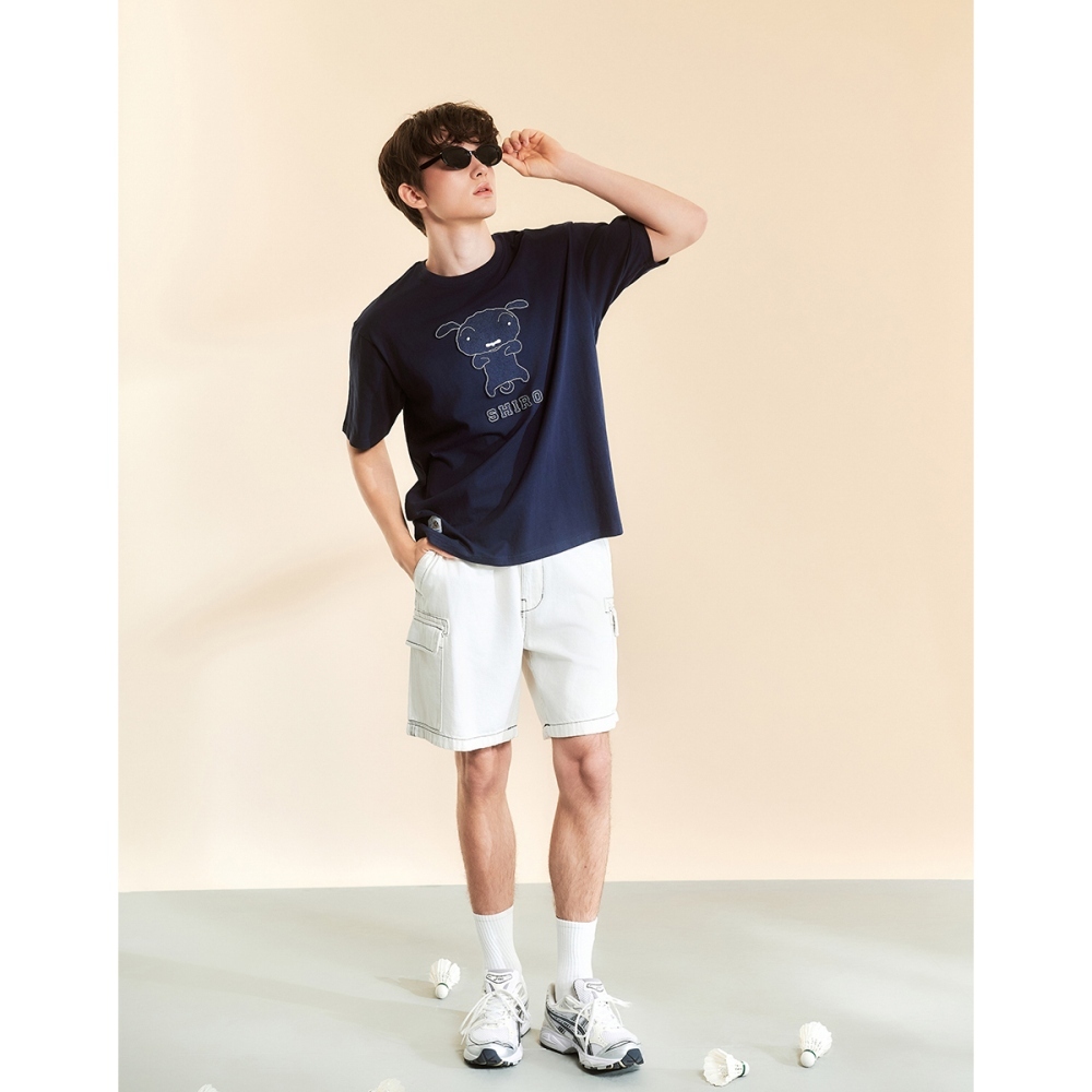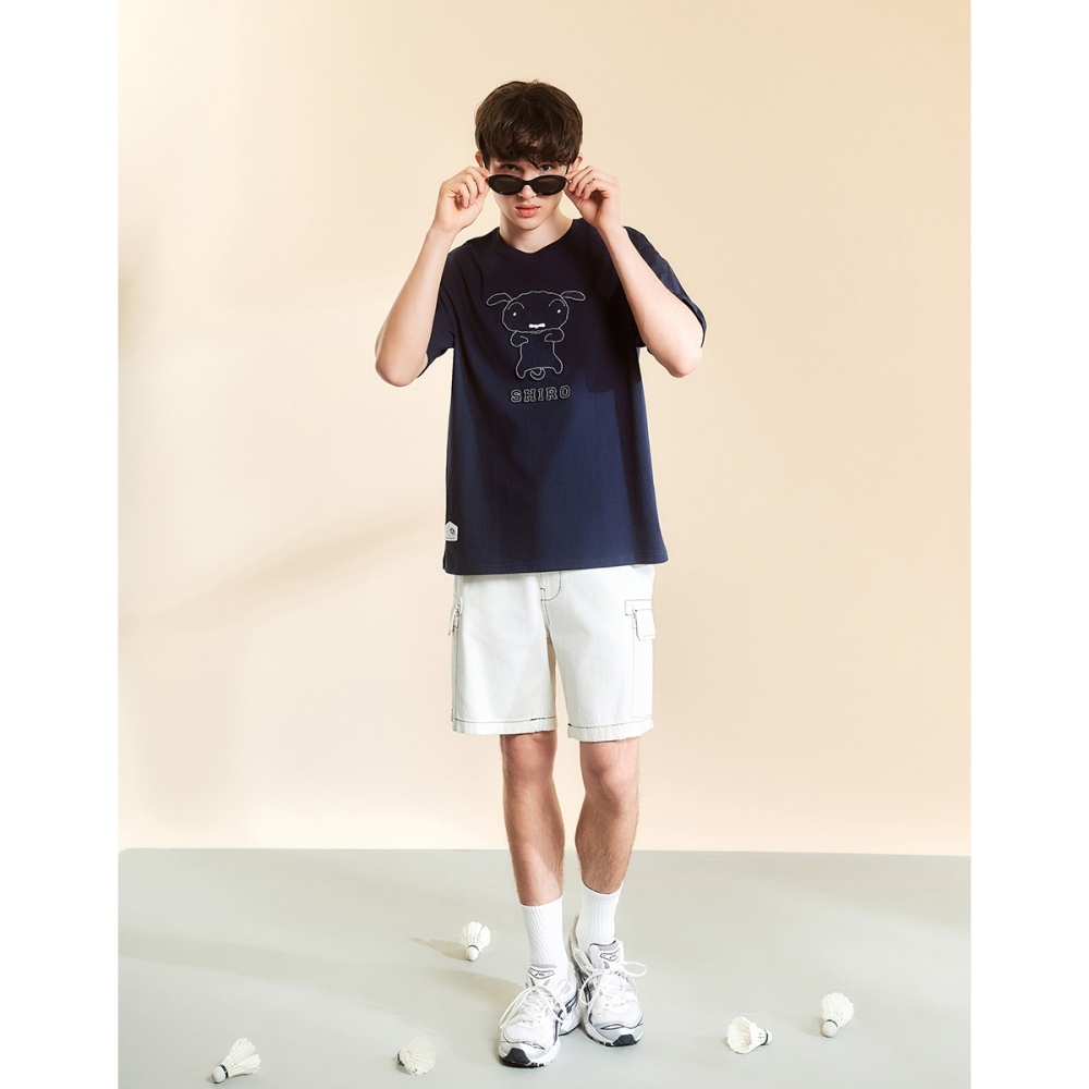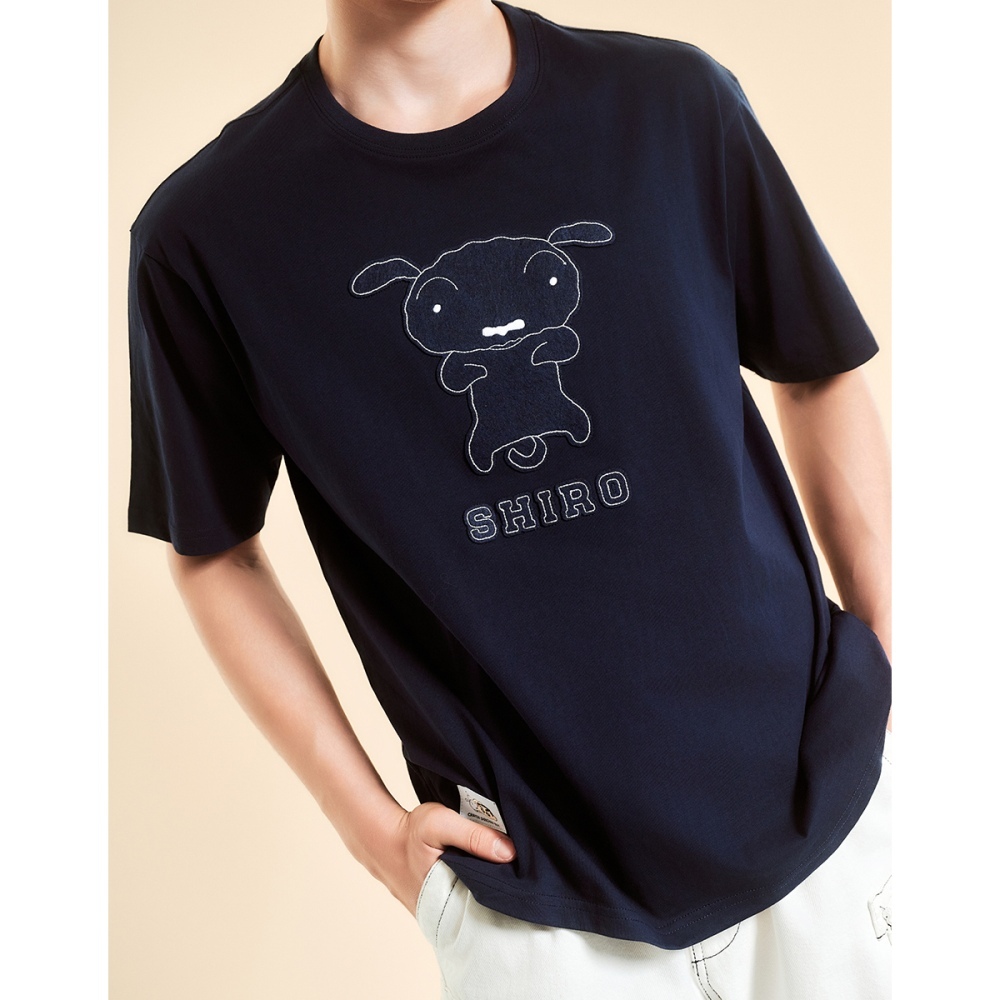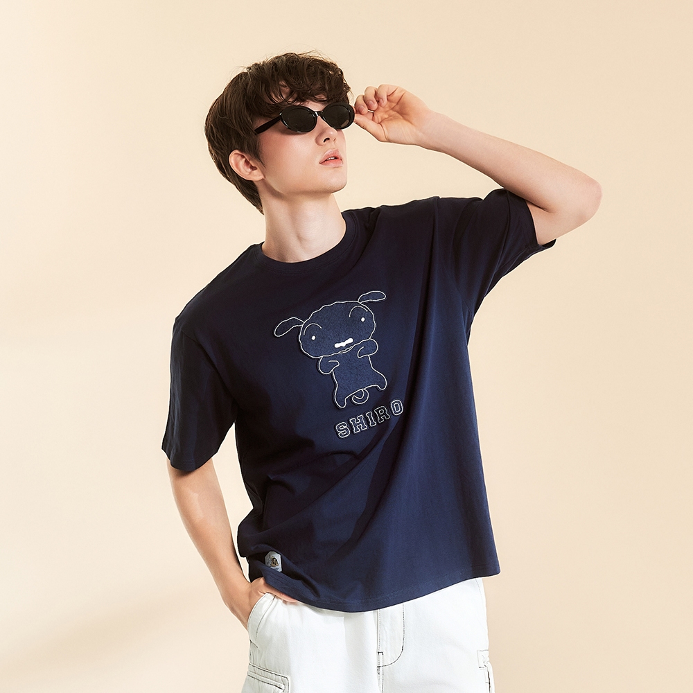 CACO-小白刻字電繡短T-男【J1SC032】74丈青,S|74丈青,M|74丈青,LT-Shirtscaco_tw