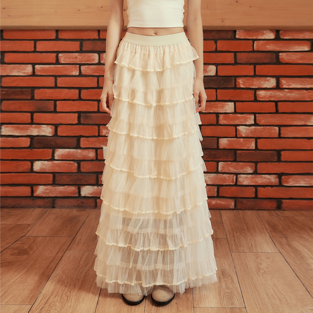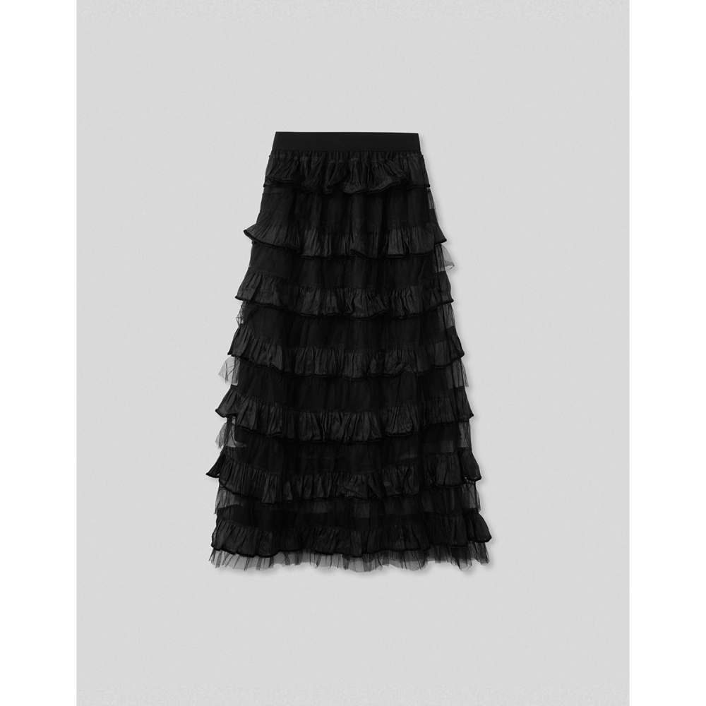 CC.DAILY-漸層捲邊波浪紗裙(二色)-女【J2CO081】09黑,S|09黑,M|27淺杏,S|27淺杏,Mcaco_tw