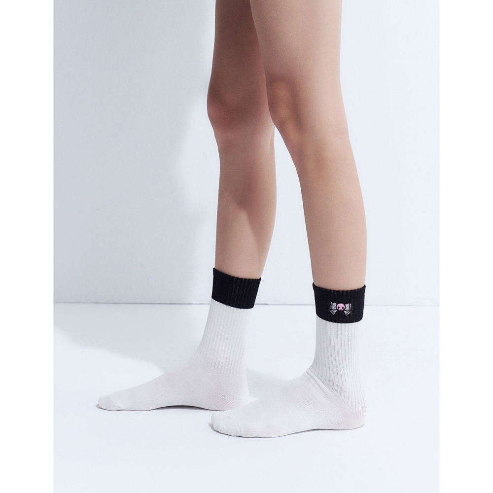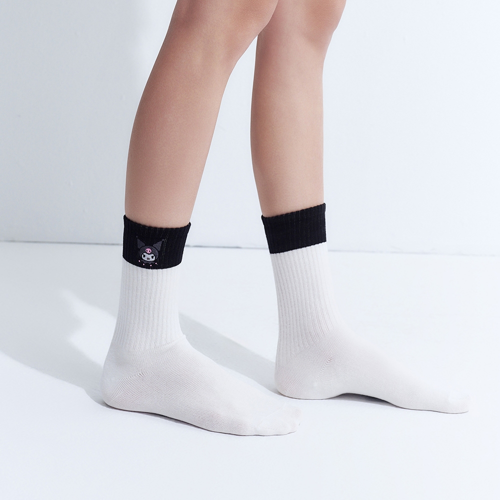 CACO-MIT 酷洛米撞色中長襪-女【J2SA069】01白,FSockscaco_tw