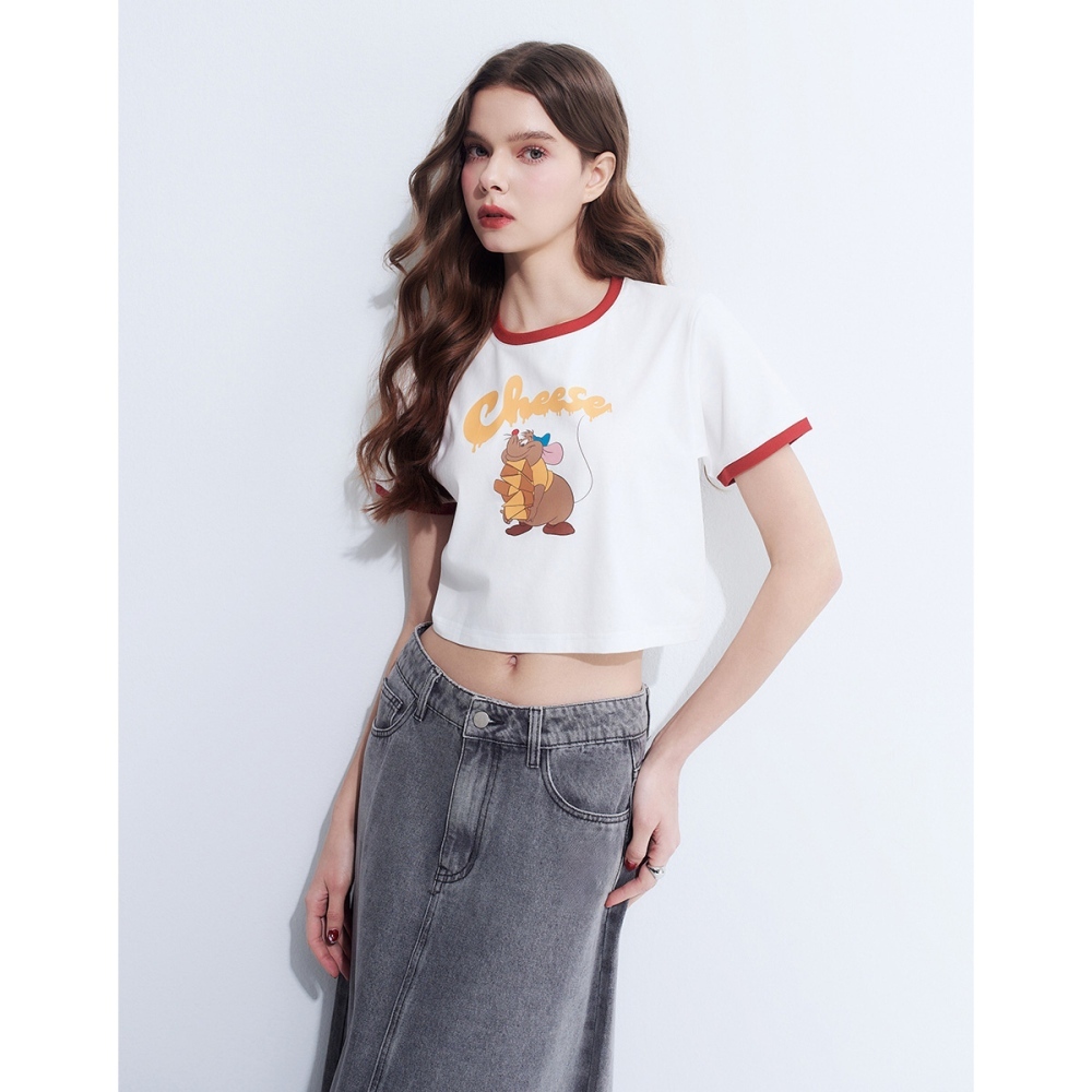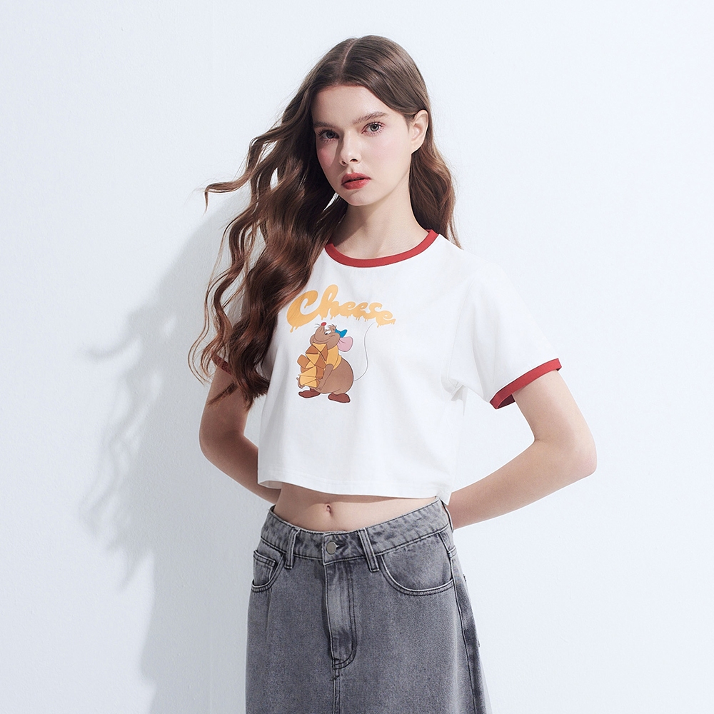 CACO-葛斯愛吃起司撞色短版T‧情侶款-女【J2DI111】01白,S|01白,MT-shirtscaco_tw
