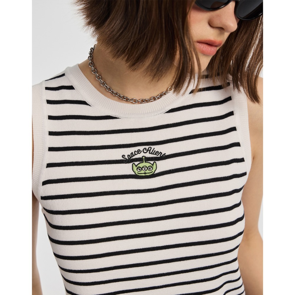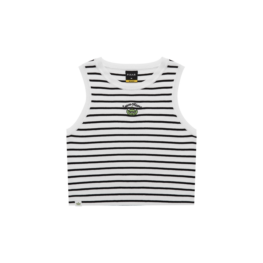 CACO-三眼怪條紋針織背心-女【J2DI074】01白,S|01白,Mcaco_tw