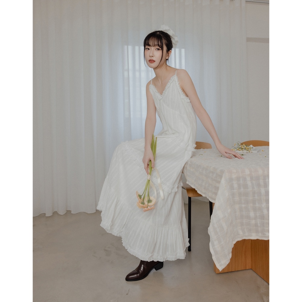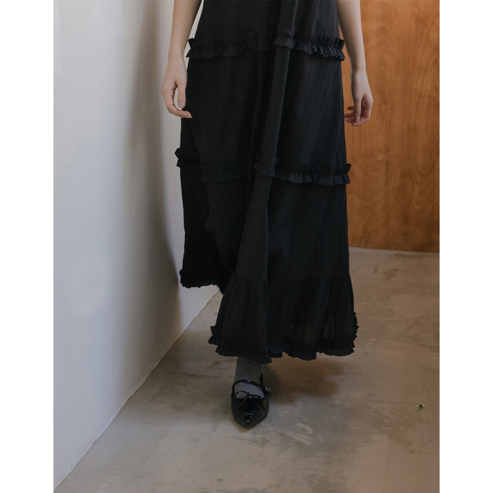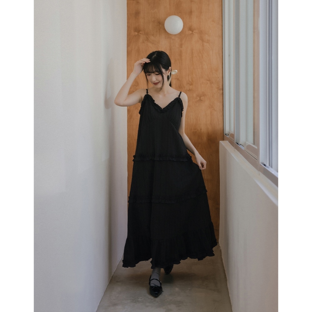 CC.DAILY-織紋波浪邊長洋裝(二色)-女【J2CO016】01白,S|01白,M|09黑,S|09黑,Mcaco_tw