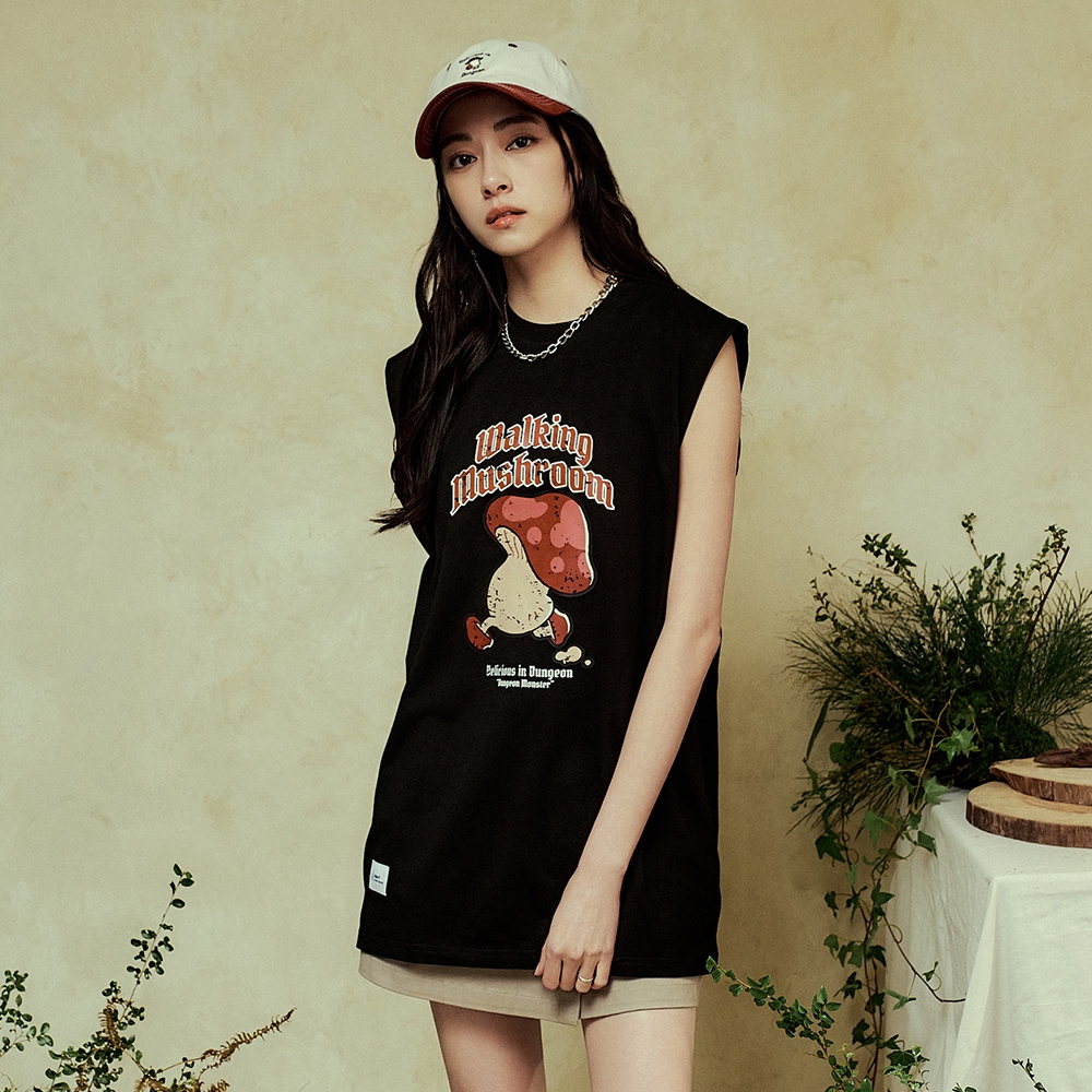 CACO-迷宮飯走路菇寬肩背心(二色)-男女共穿【J1MF007】09黑,S|09黑,M|09黑,L|09黑,XL|01白,S|01白,M|01白,L|01白,XLTankscaco_tw