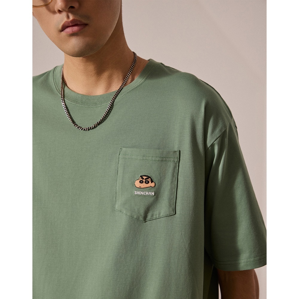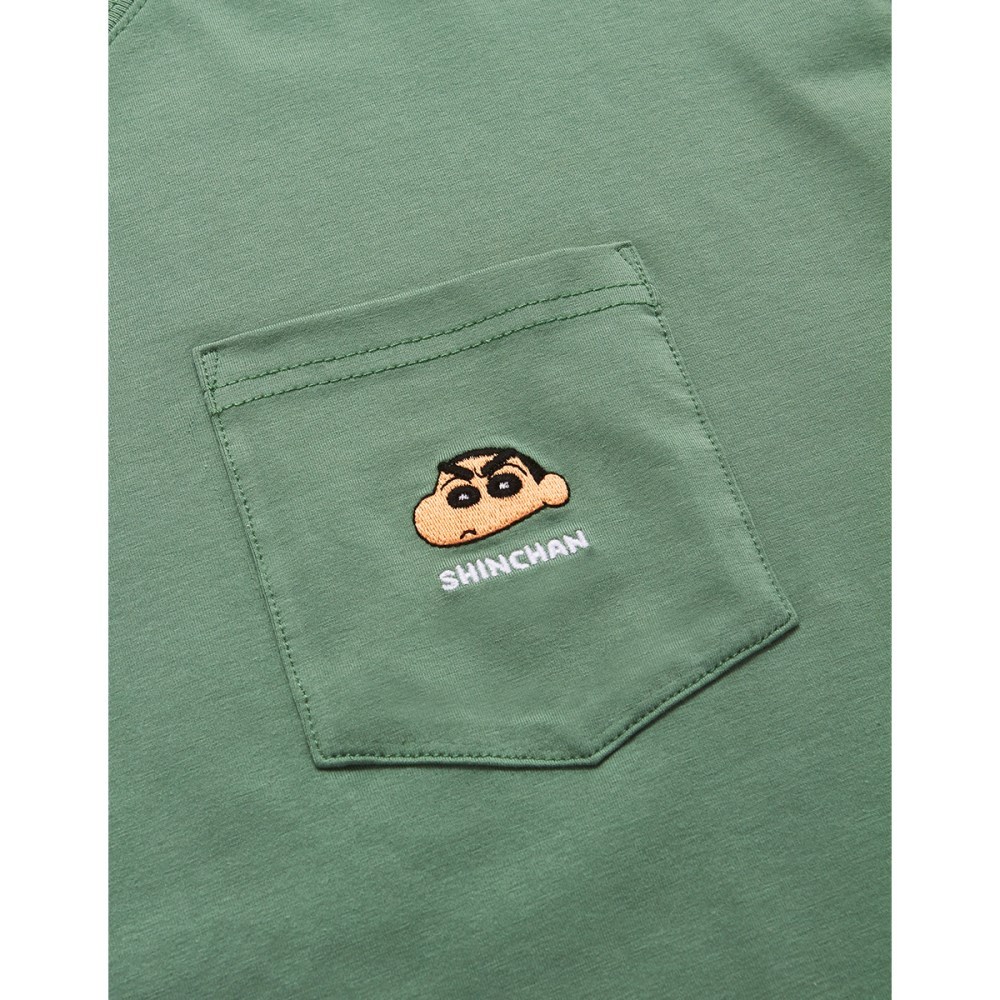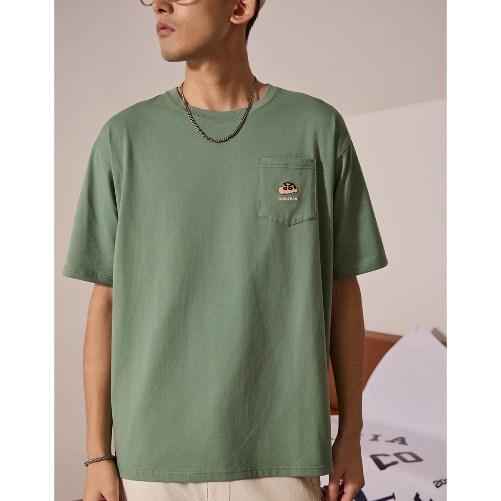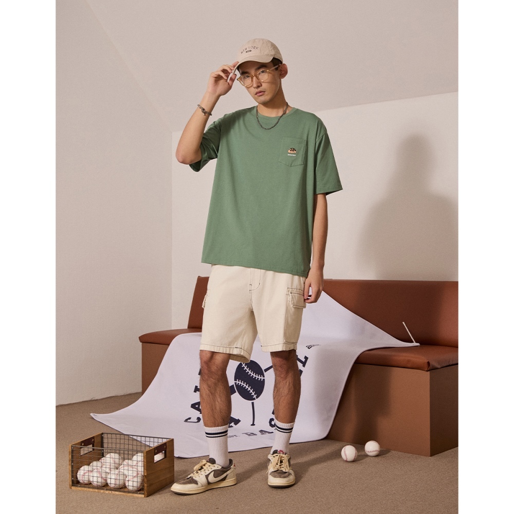 CACO-小新電繡涼感口袋短T-男【J1SC500】69灰綠,XS|69灰綠,S|69灰綠,M|69灰綠,L|69灰綠,XLT-Shirtscaco_tw