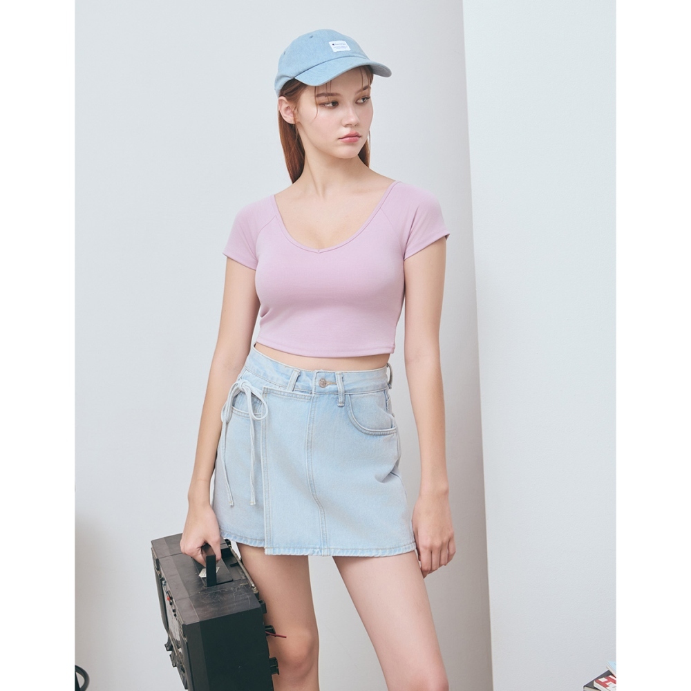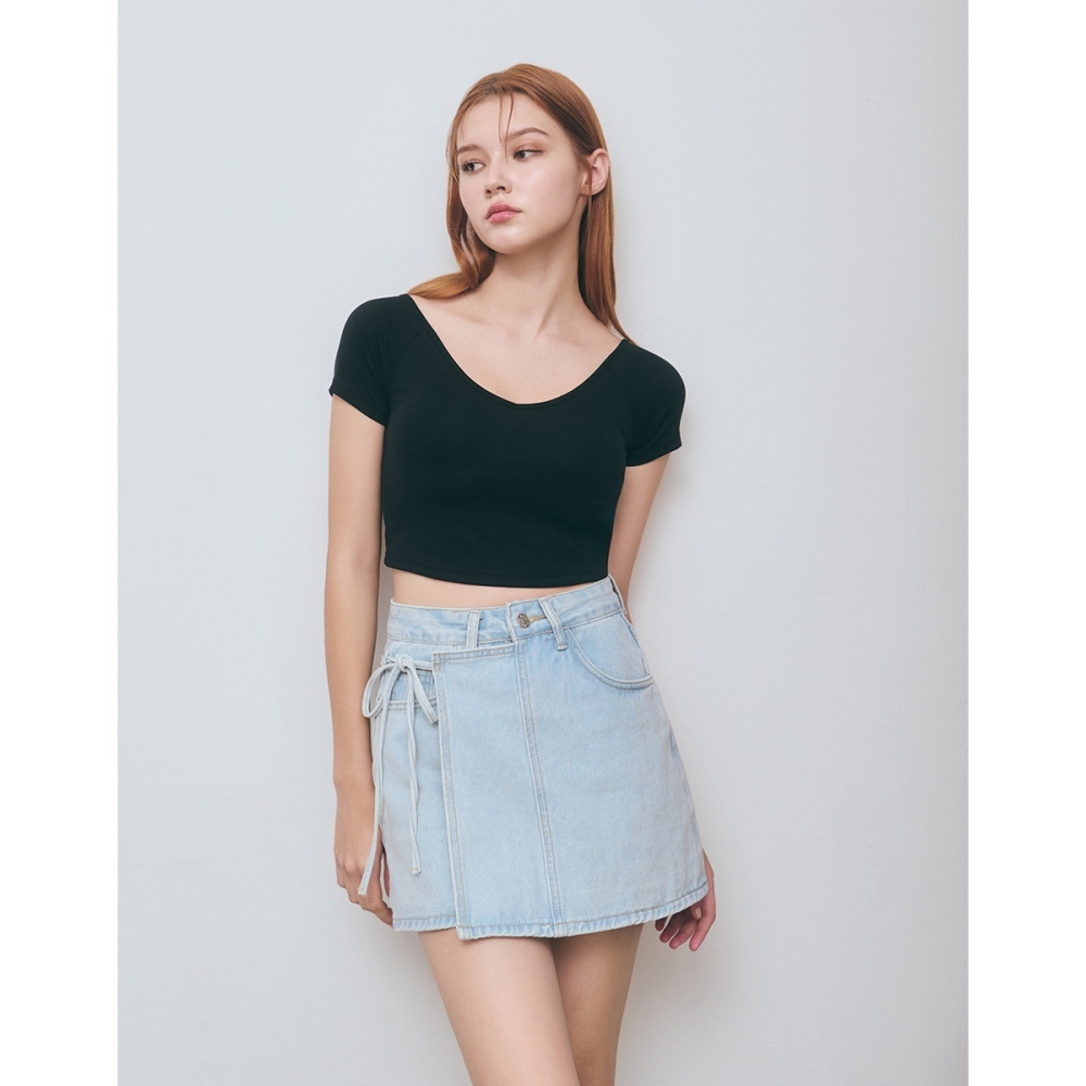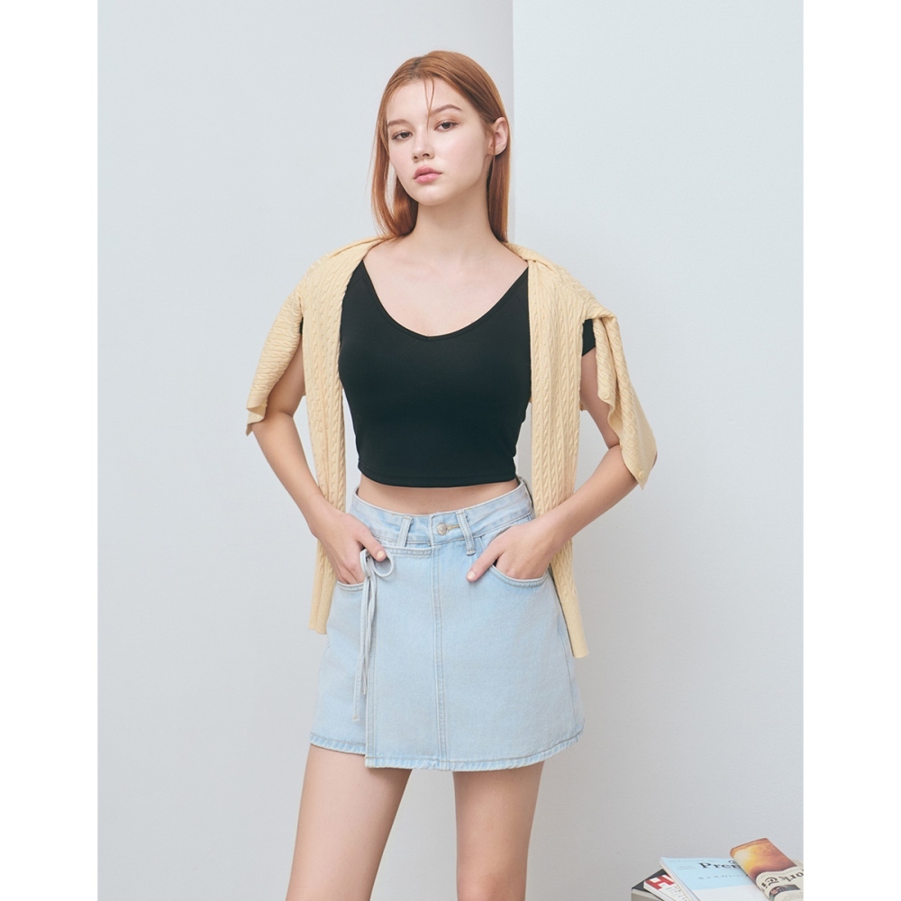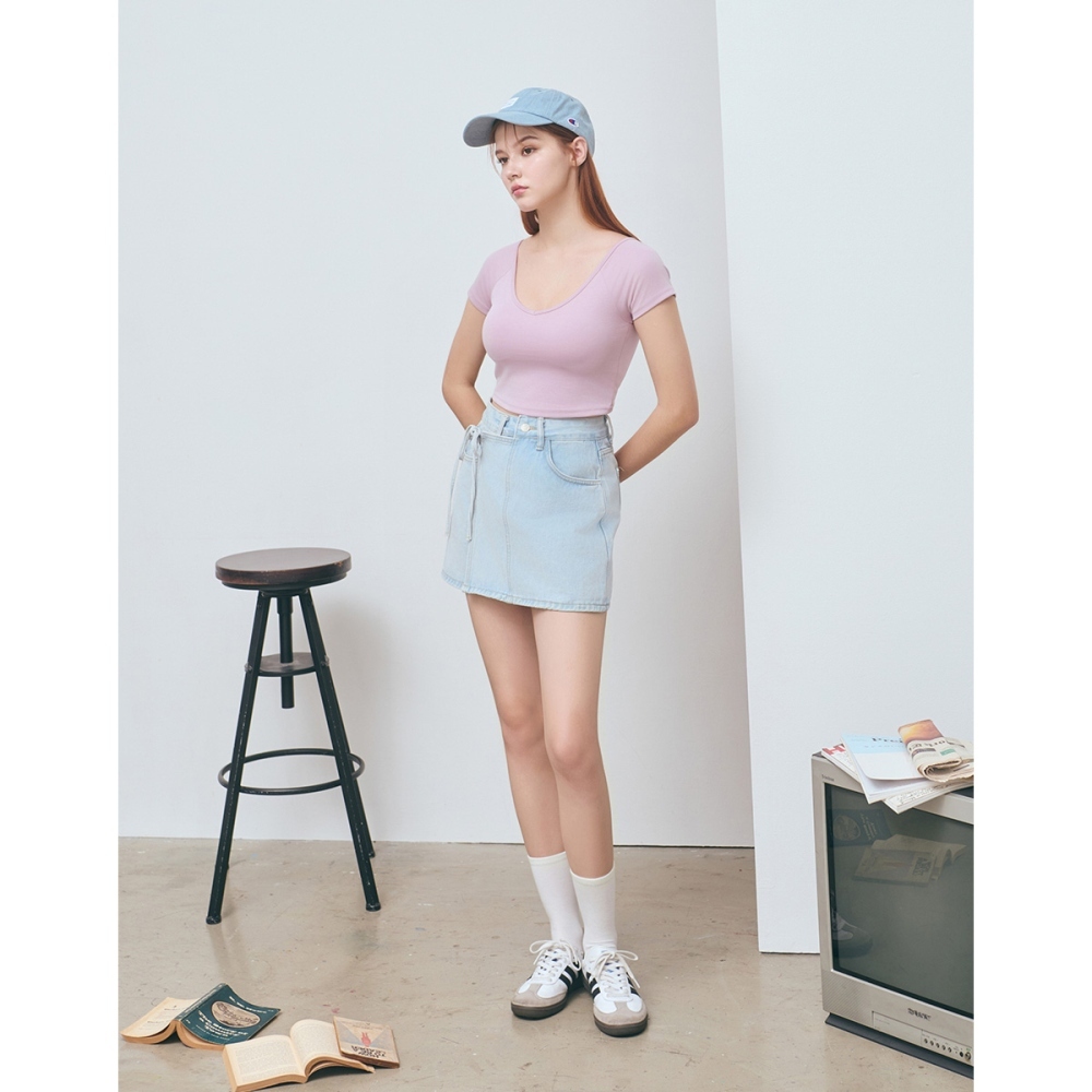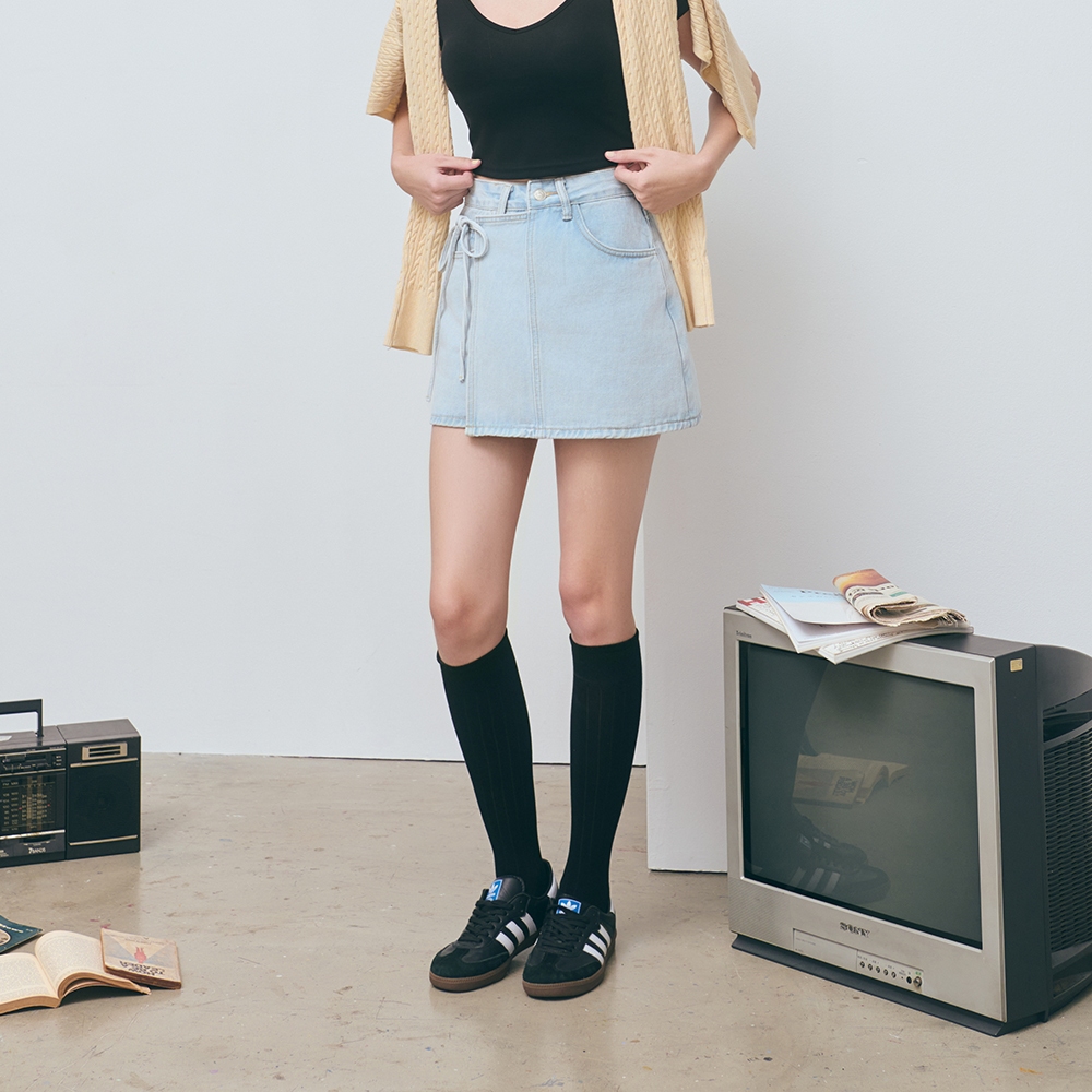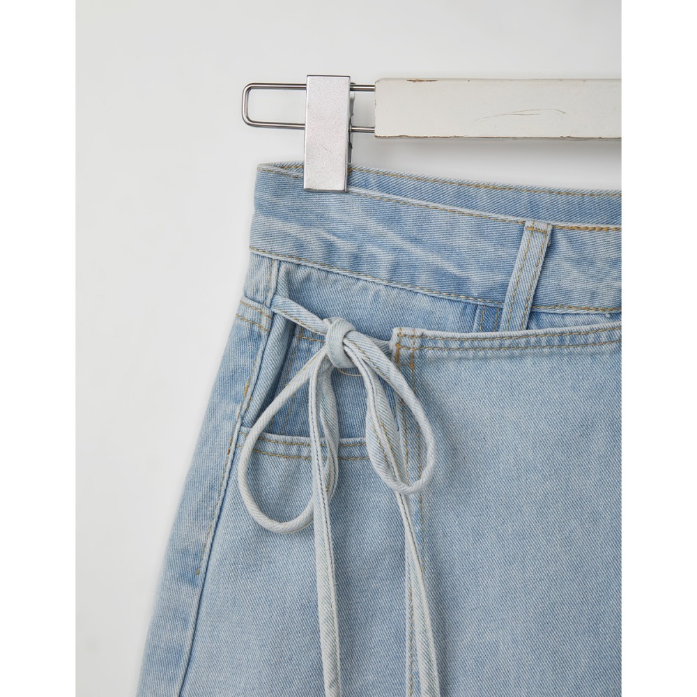 CC.DAILY-拼接綁繩牛仔短裙(二色)-女【J2CO007】02米白,S|02米白,M|02米白,L|70淺藍,S|70淺藍,M|70淺藍,Lcaco_tw