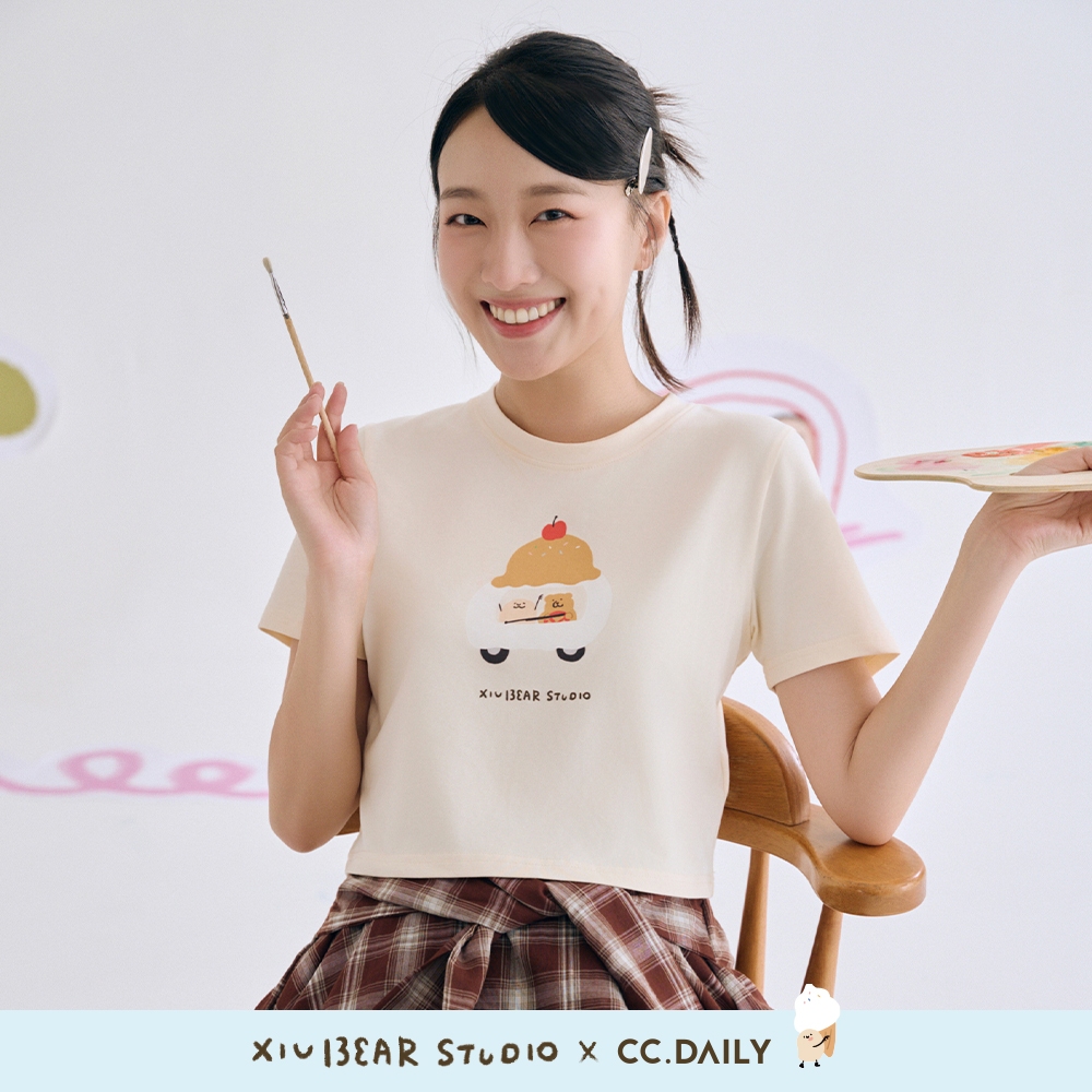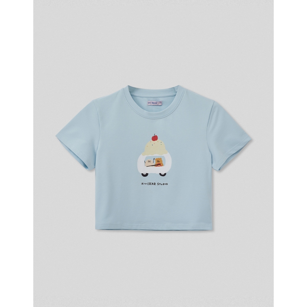CC.DAILY-咻咻熊刨冰車短T(二色)-女【J2CO625】27淺杏,S|27淺杏,M|27淺杏,L|70淺藍,S|70淺藍,M|70淺藍,LT-shirtscaco_tw