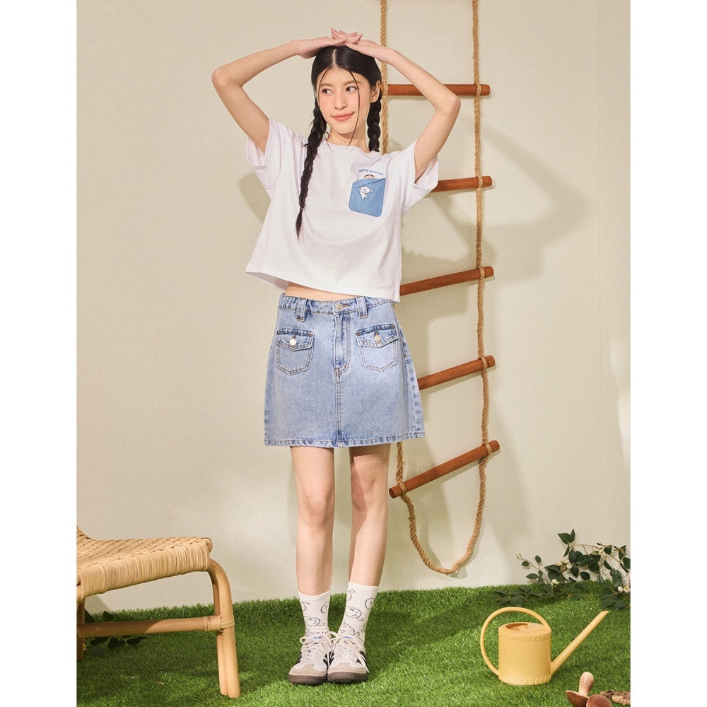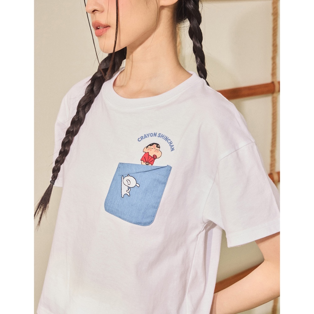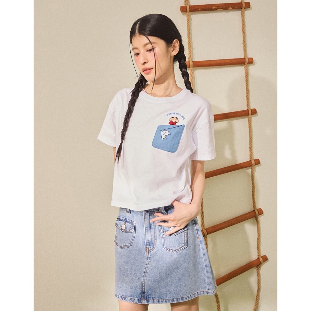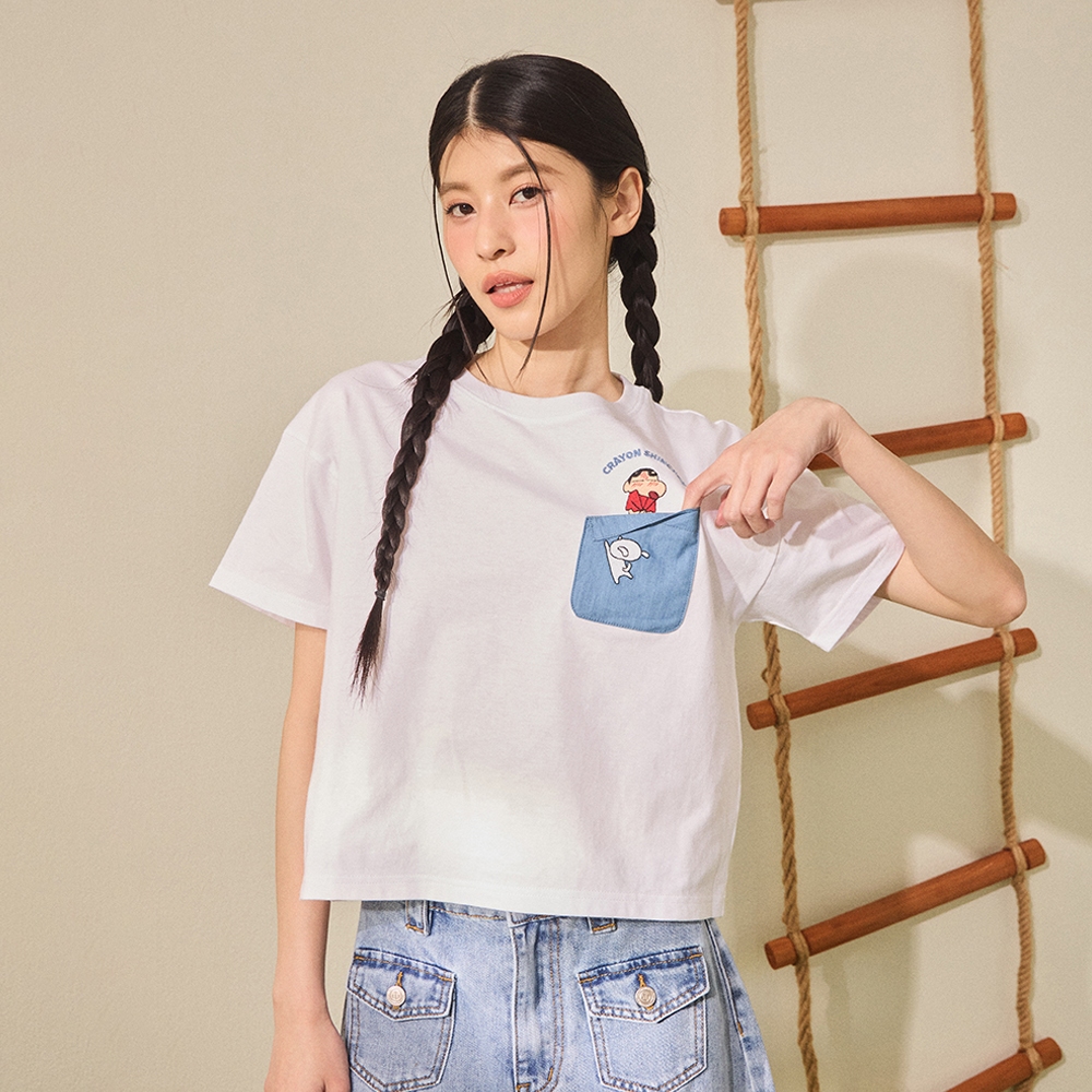 CACO-小新小白牛仔口袋短T‧親子款-女【J2SC003】01白,S|01白,MT-shirtscaco_tw