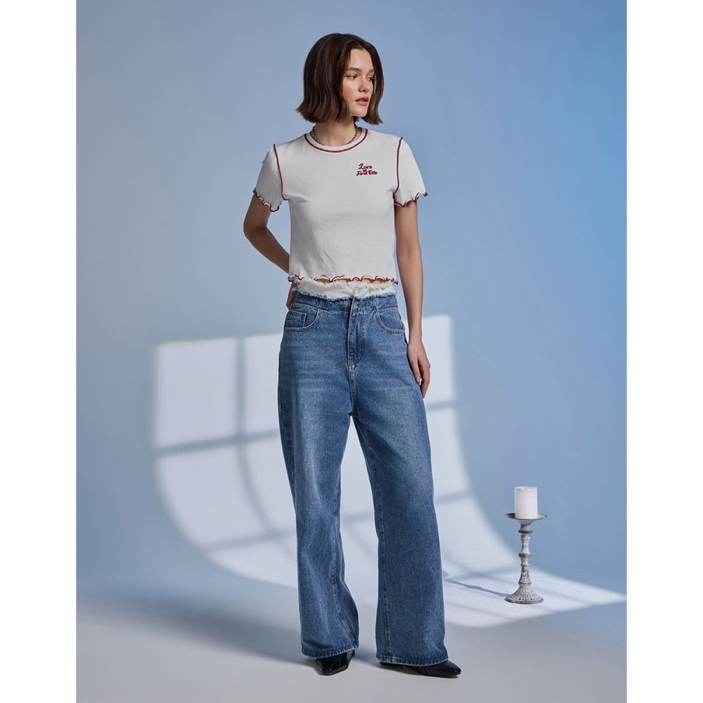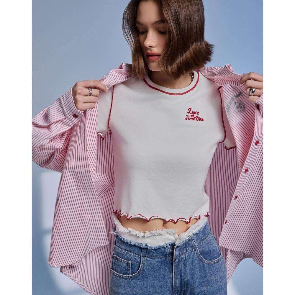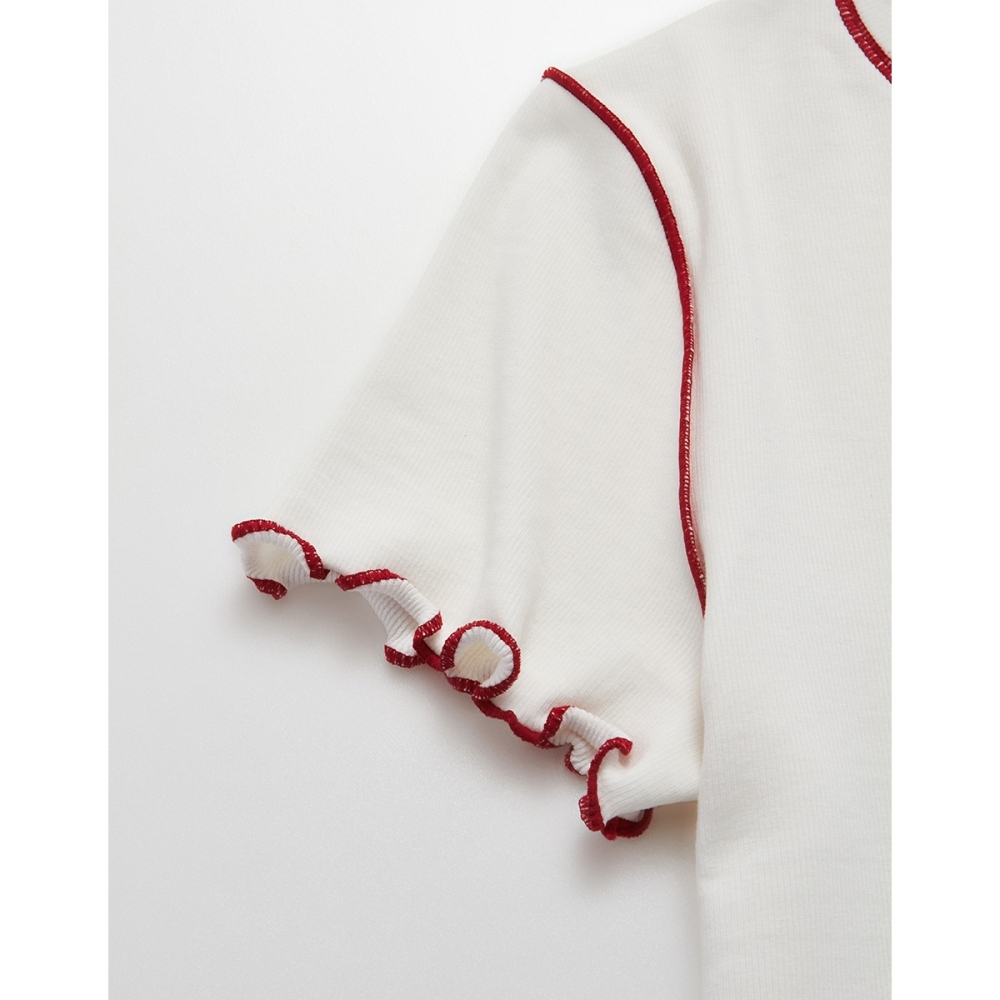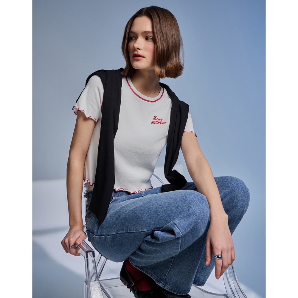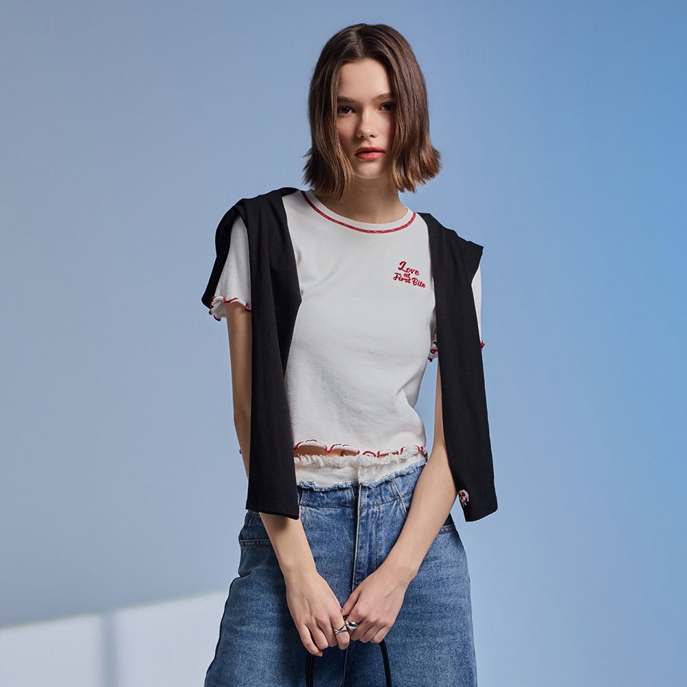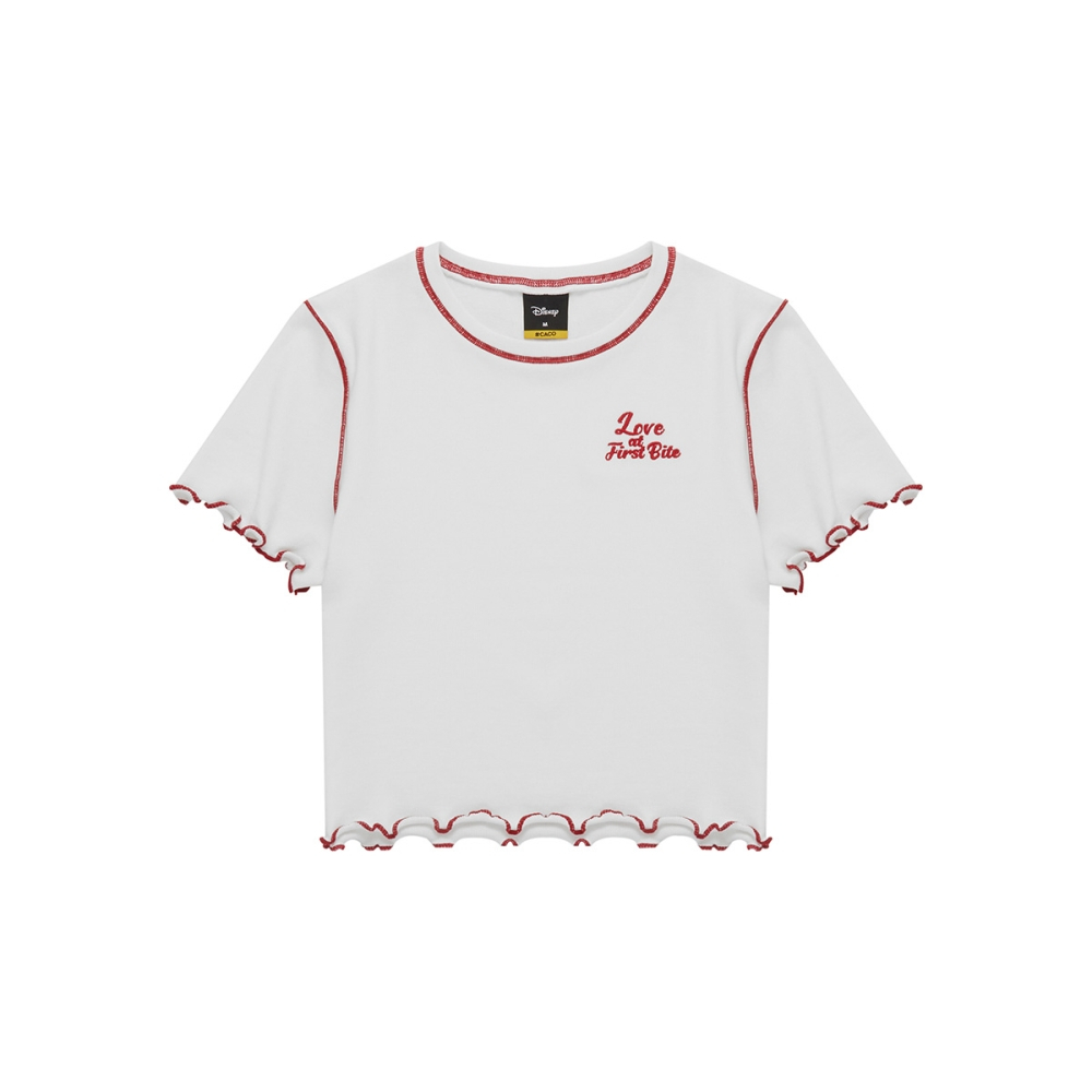 CACO-毒蘋果配色捲邊合身T-女【J2DI049】01白,S|01白,MT-shirtscaco_tw