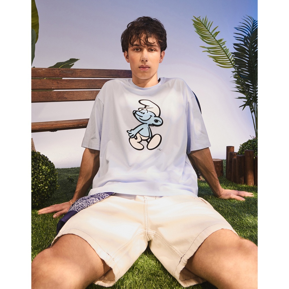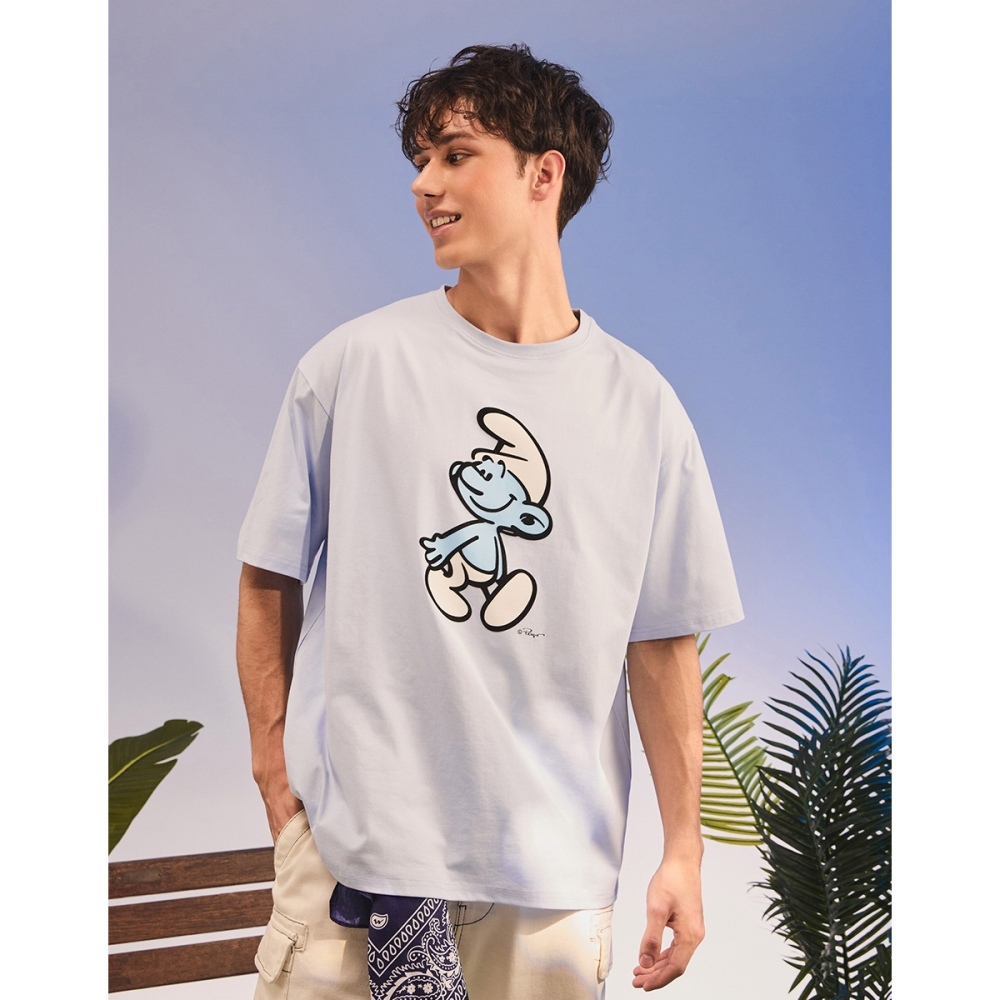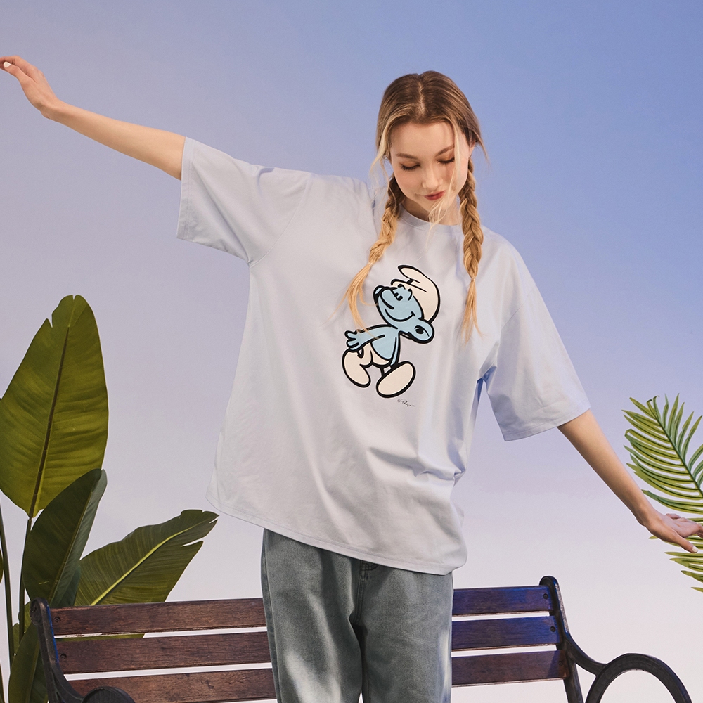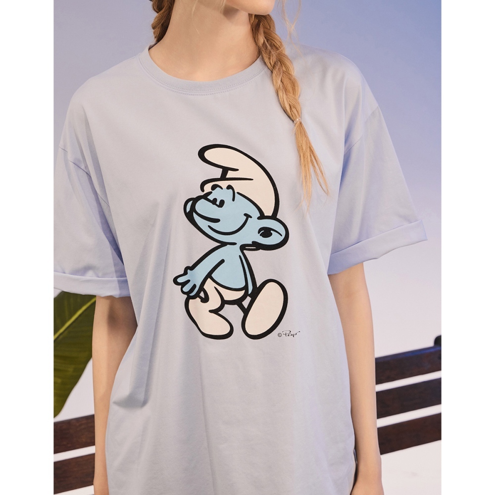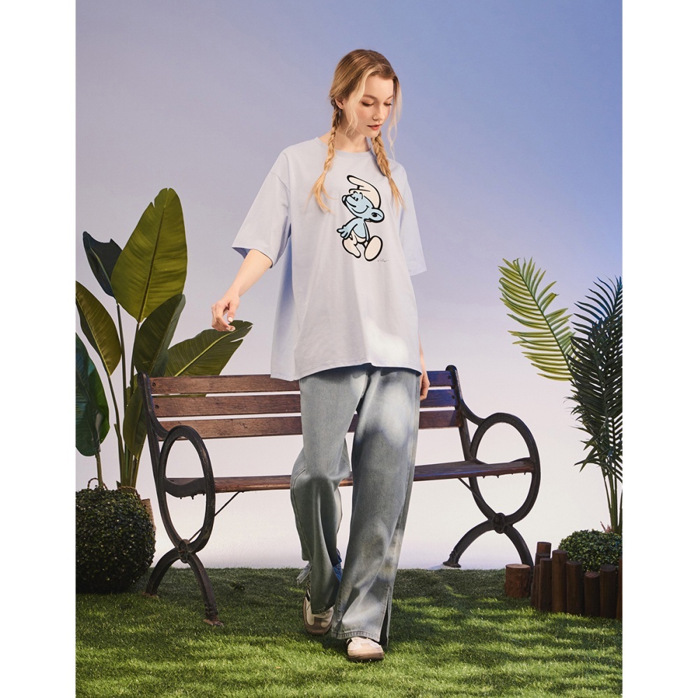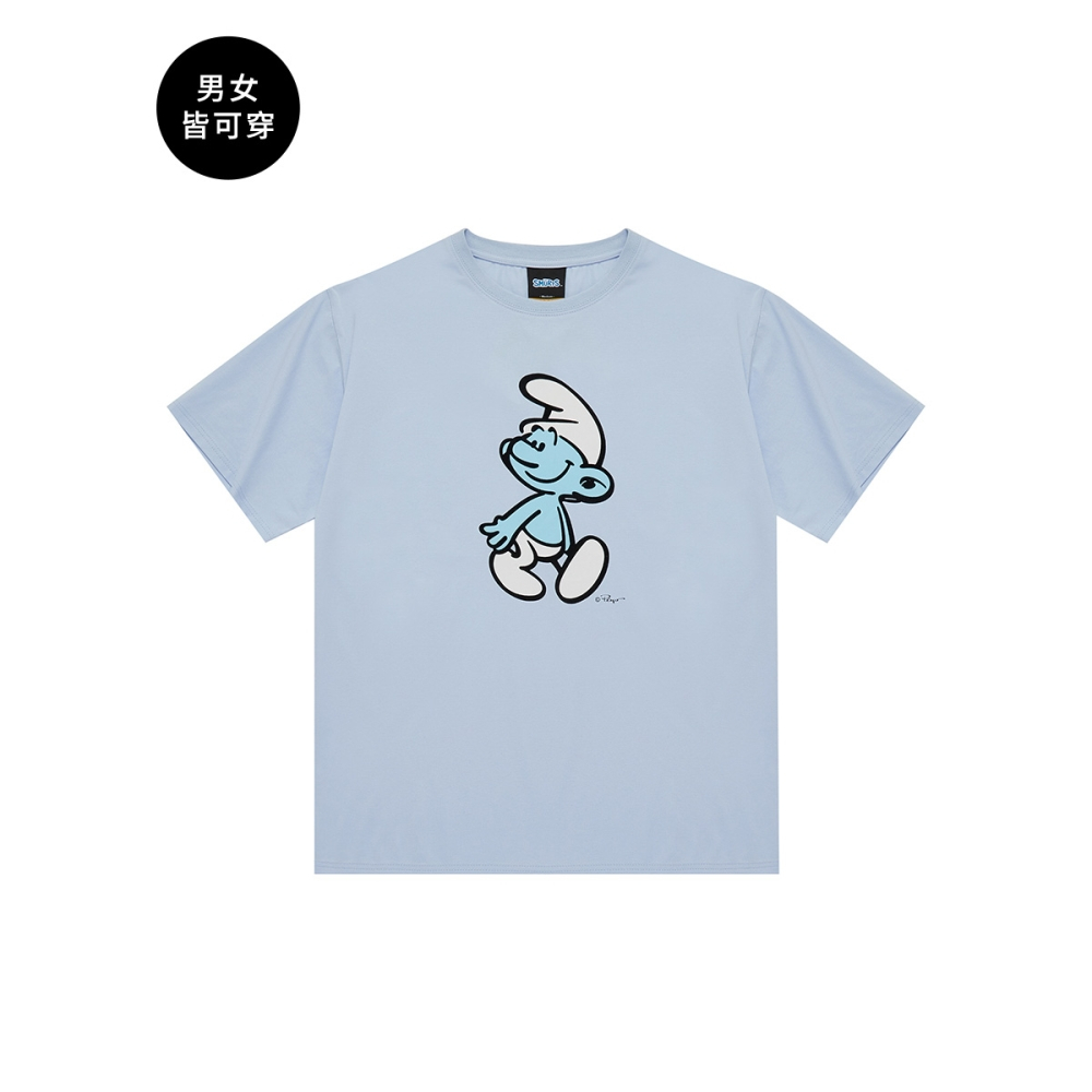 CACO-藍色小精靈小搗蛋圖T-男女共穿【J2SF008】70淺藍,S|70淺藍,M|70淺藍,LT-shirtscaco_tw