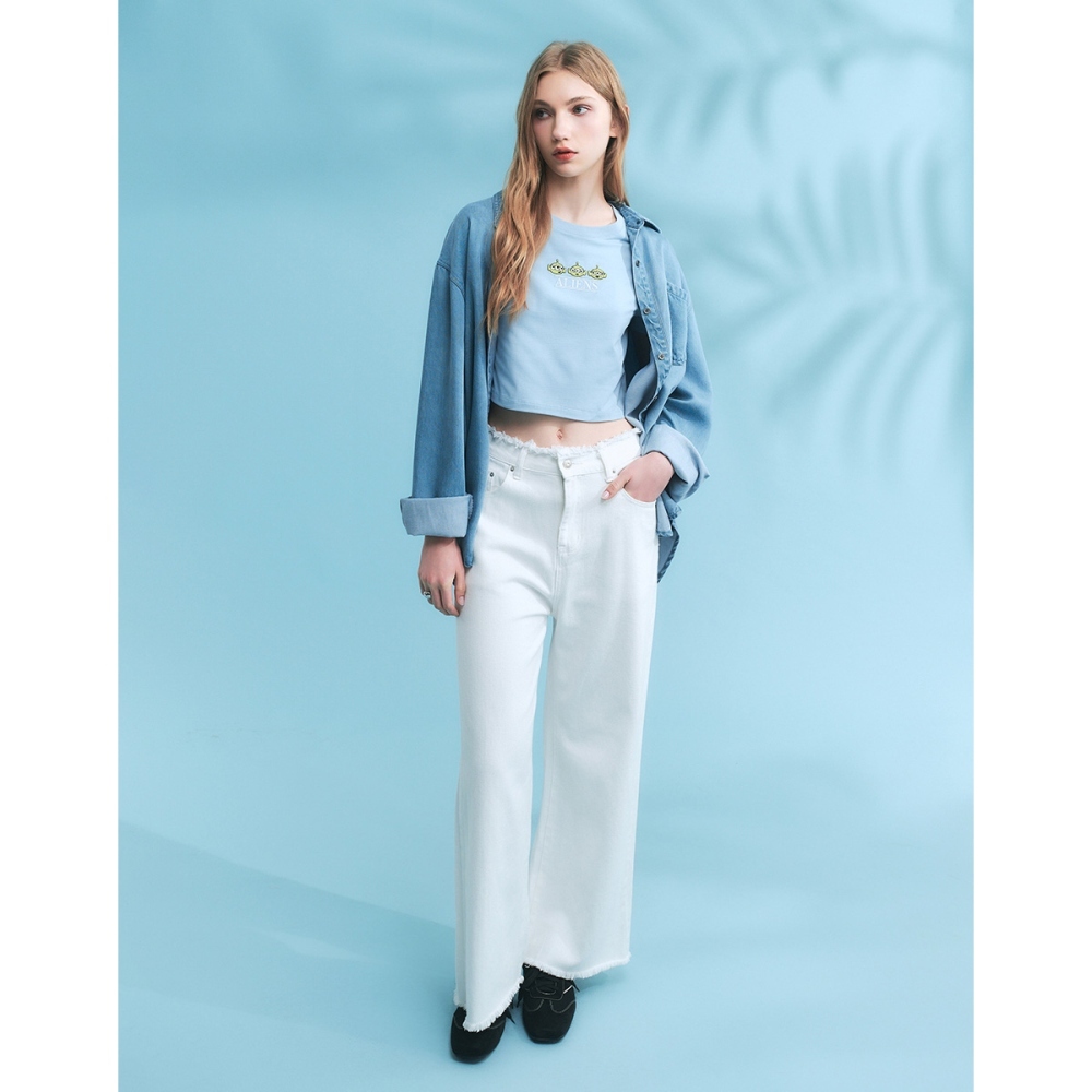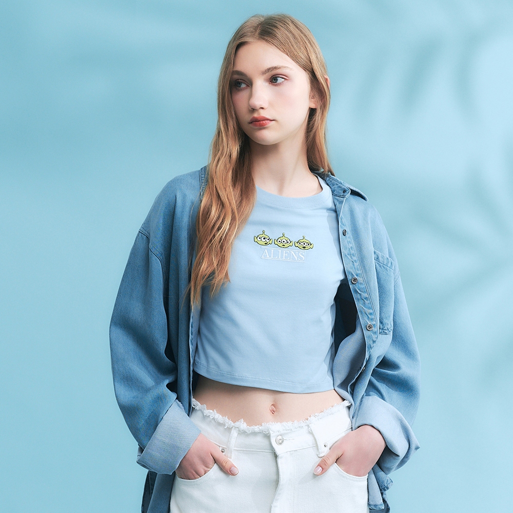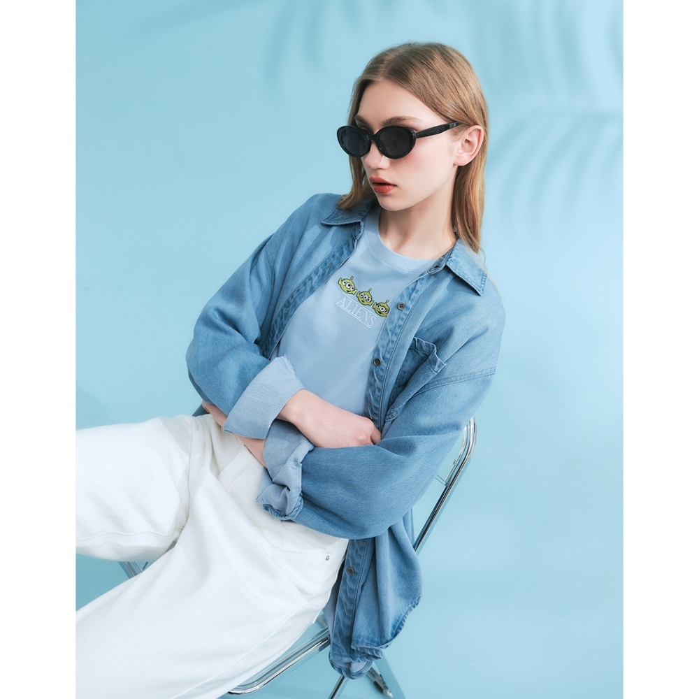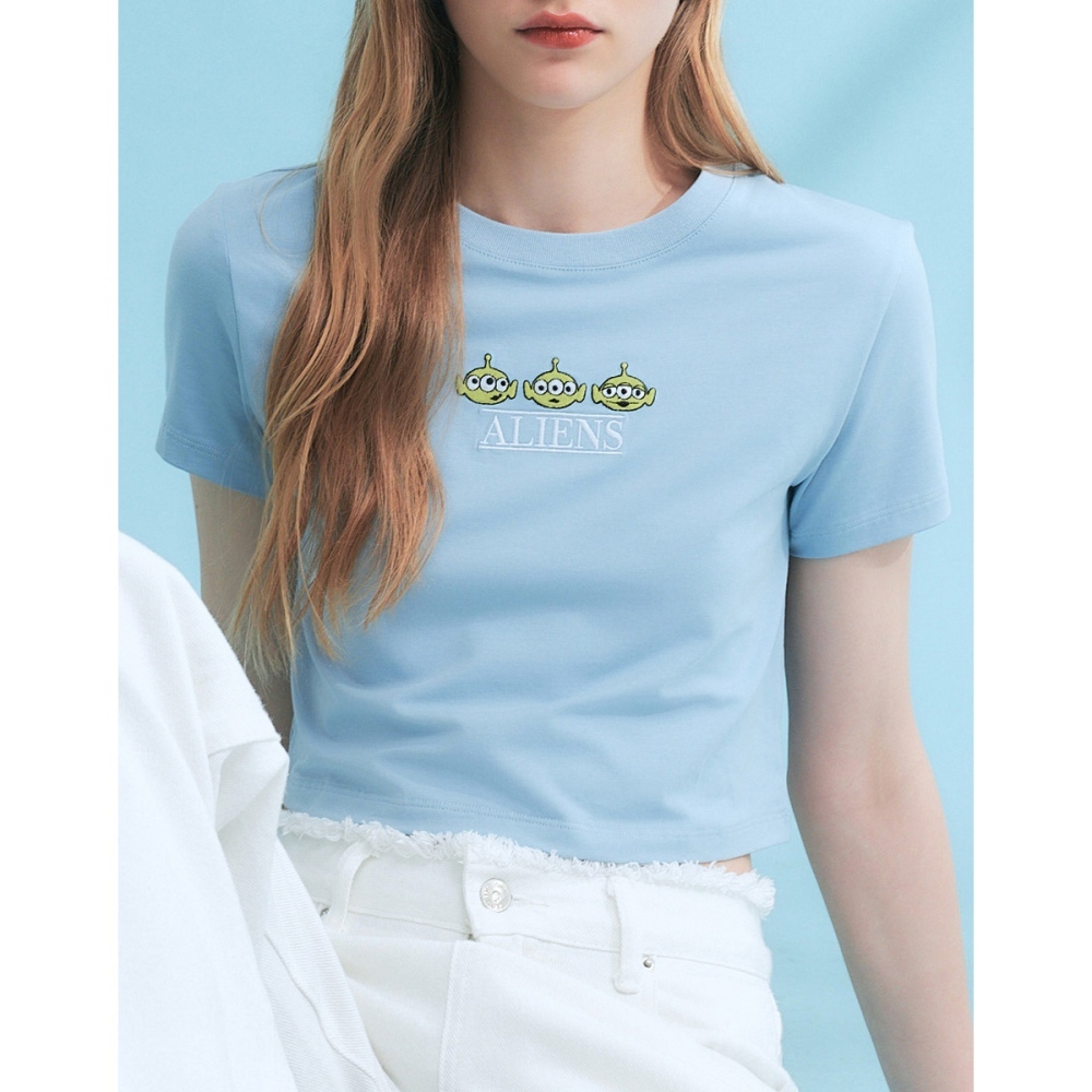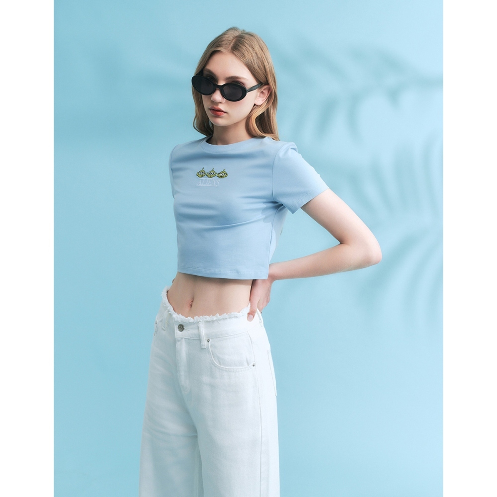CACO-三眼怪刺繡涼感合身T‧情侶款-女【J2DI503】70淺藍,S|70淺藍,M|70淺藍,LT-shirtscaco_tw
