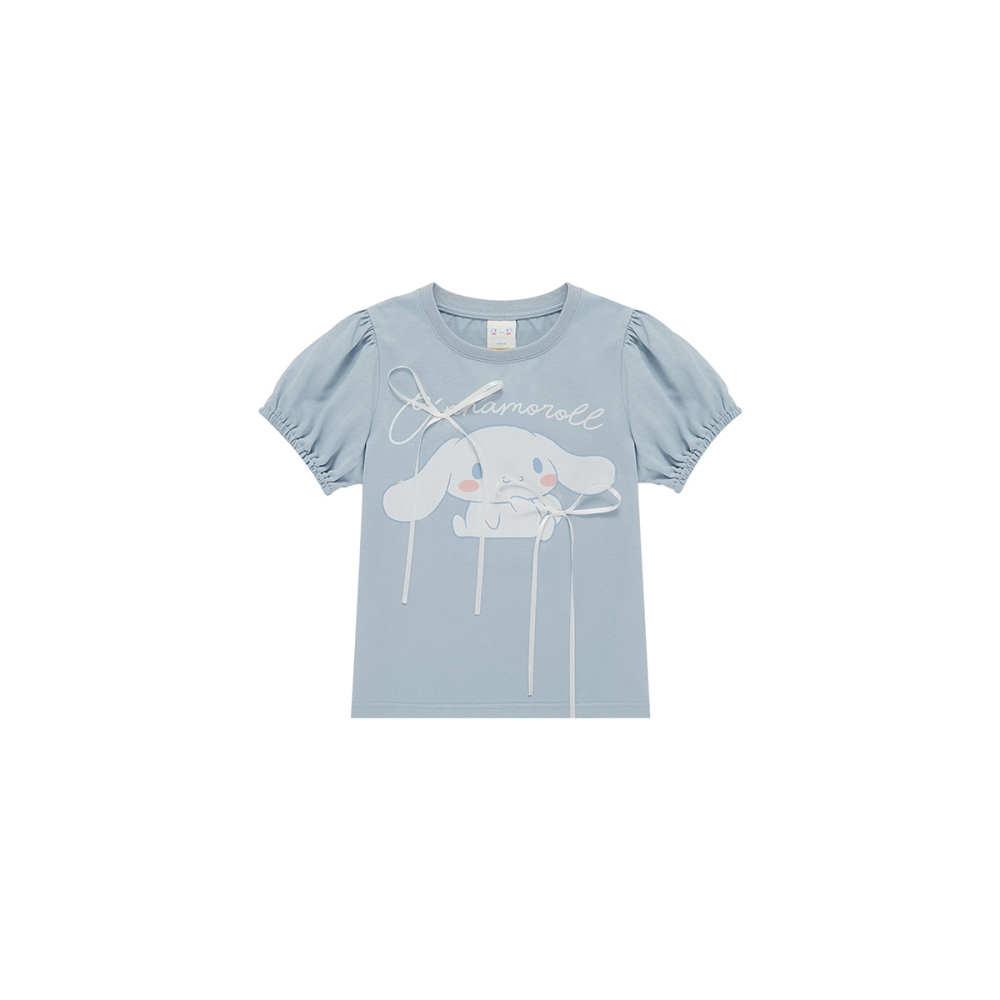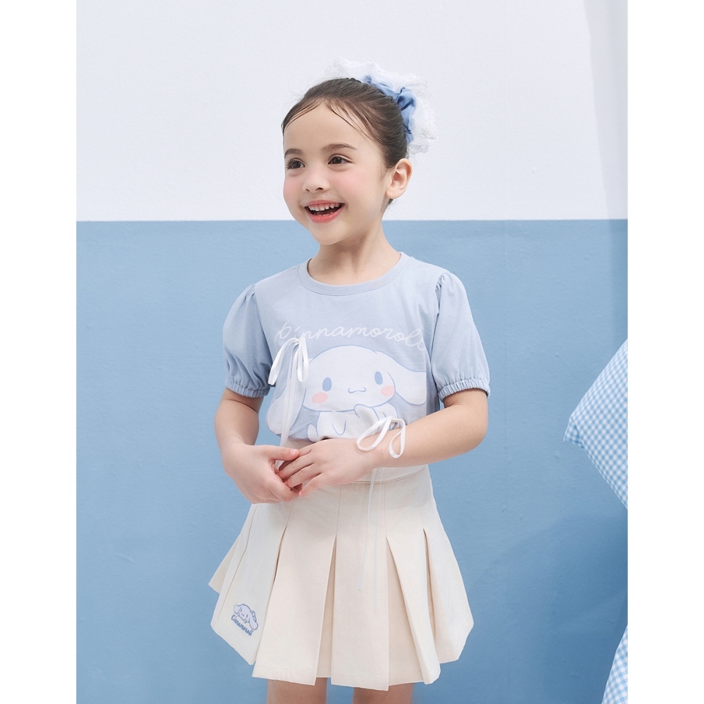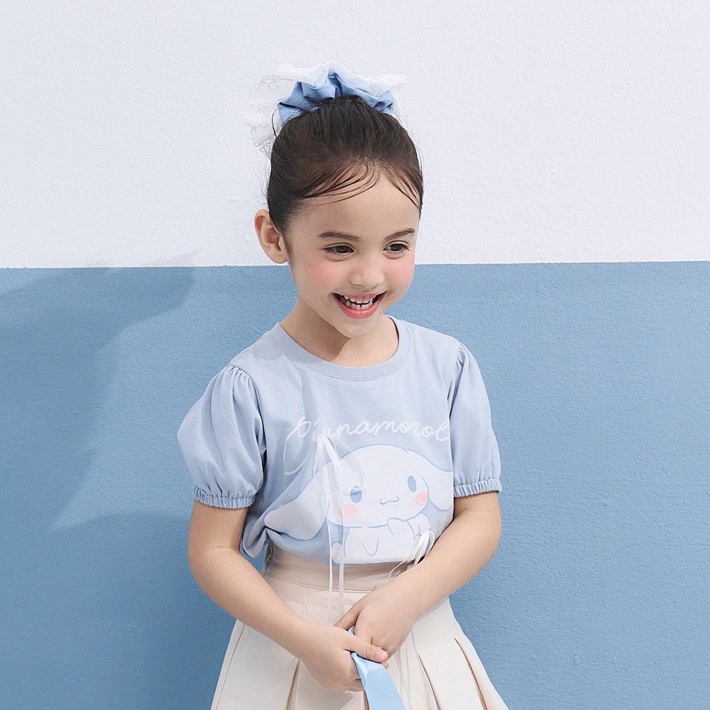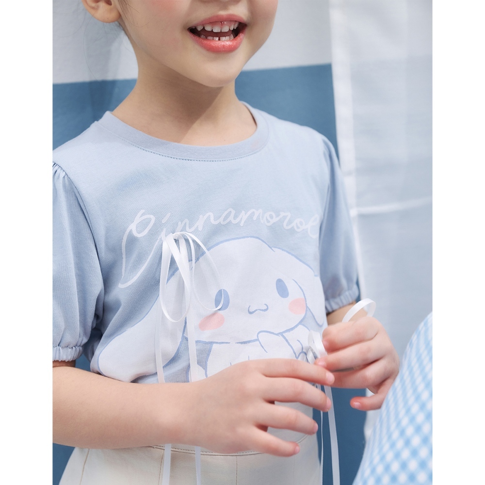 CACO-大耳狗蝴蝶結蓬蓬袖上衣‧親子款-童【J3SA026】70淺藍,100|70淺藍,110|70淺藍,120|70淺藍,130|70淺藍,140|70淺藍,150Topscaco_tw