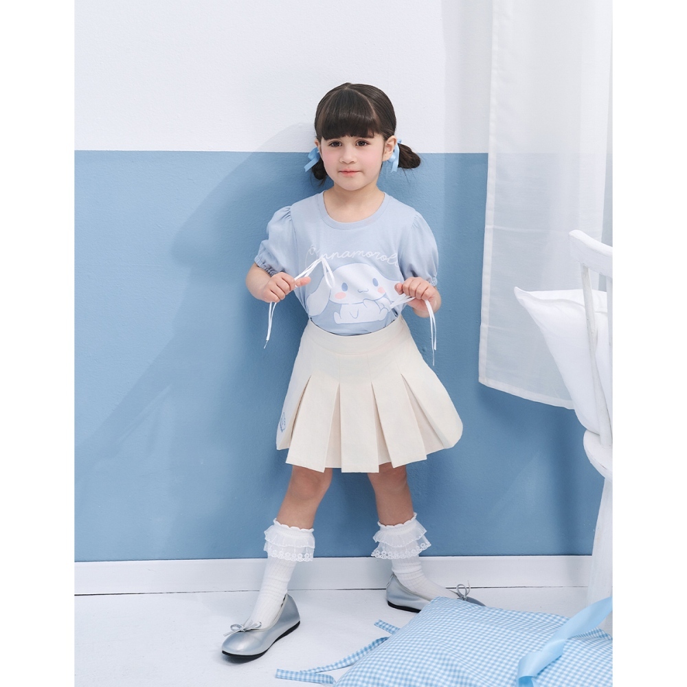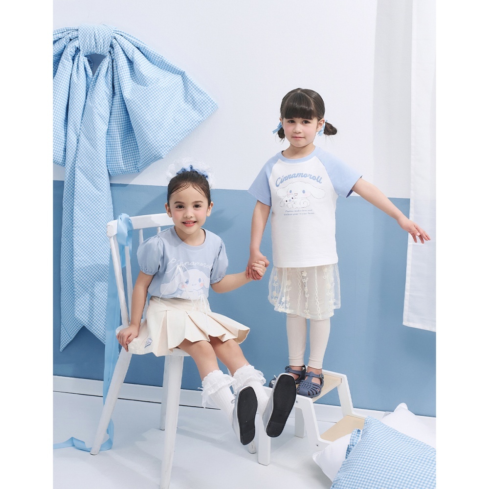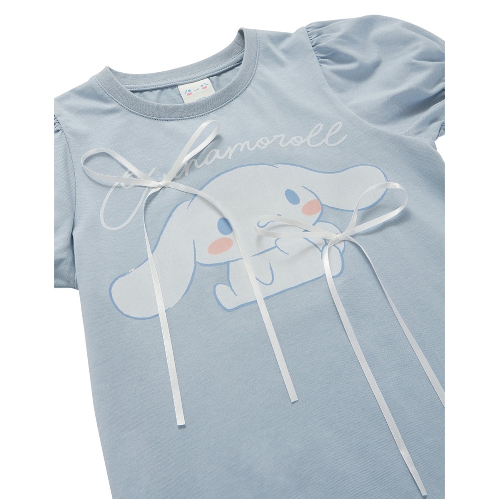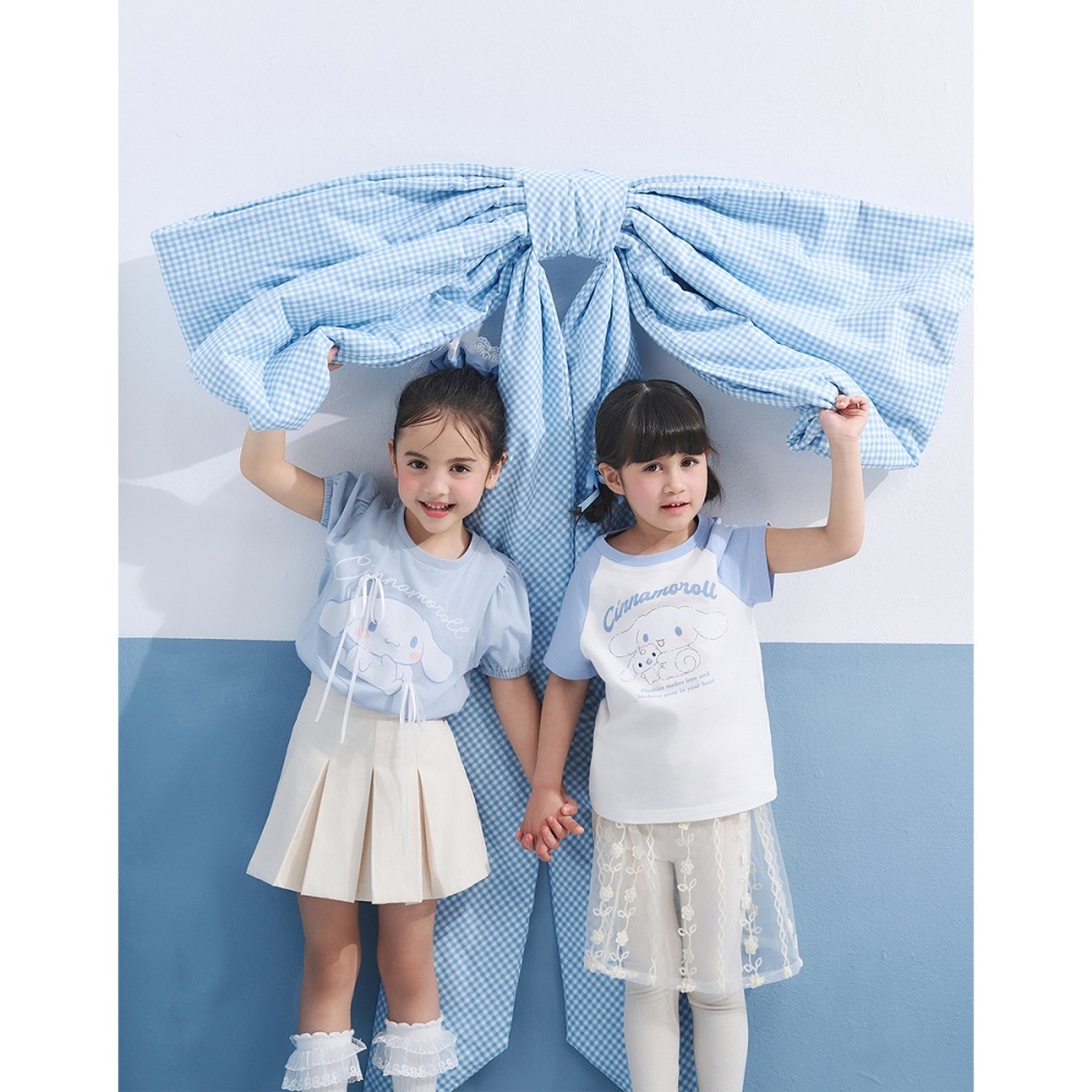 CACO-大耳狗蝴蝶結蓬蓬袖上衣‧親子款-童【J3SA026】70淺藍,100|70淺藍,110|70淺藍,120|70淺藍,130|70淺藍,140|70淺藍,150Topscaco_tw