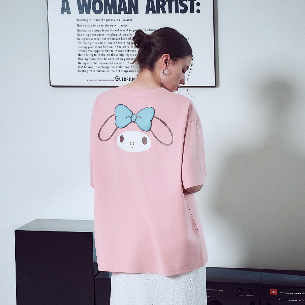 CACO-美樂蒂涼感落肩上衣‧親子款-男女共穿【J2SA040】30粉紅,S|30粉紅,M|30粉紅,LT-shirtscaco_tw