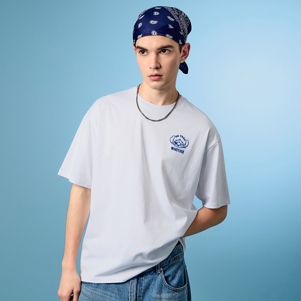 CACO-史迪奇單色繡印花涼感上衣-男【J1DI039】01白,S|01白,M|01白,L|01白,XLT-Shirtscaco_tw