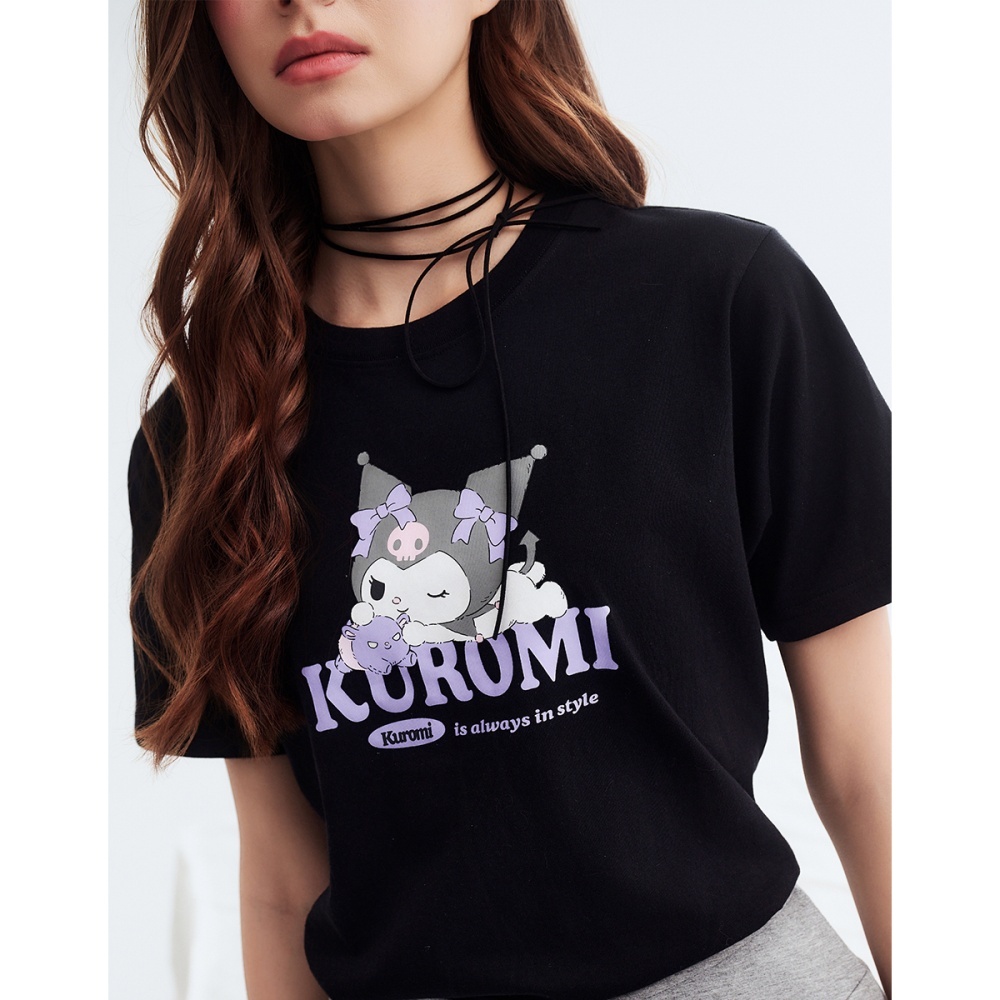 CACO-MIT 酷洛米與巴庫印花短T-男女共穿【J1SA526】09黑,XS|09黑,S|09黑,M|09黑,L|09黑,XL|09黑,2LT-Shirtscaco_tw