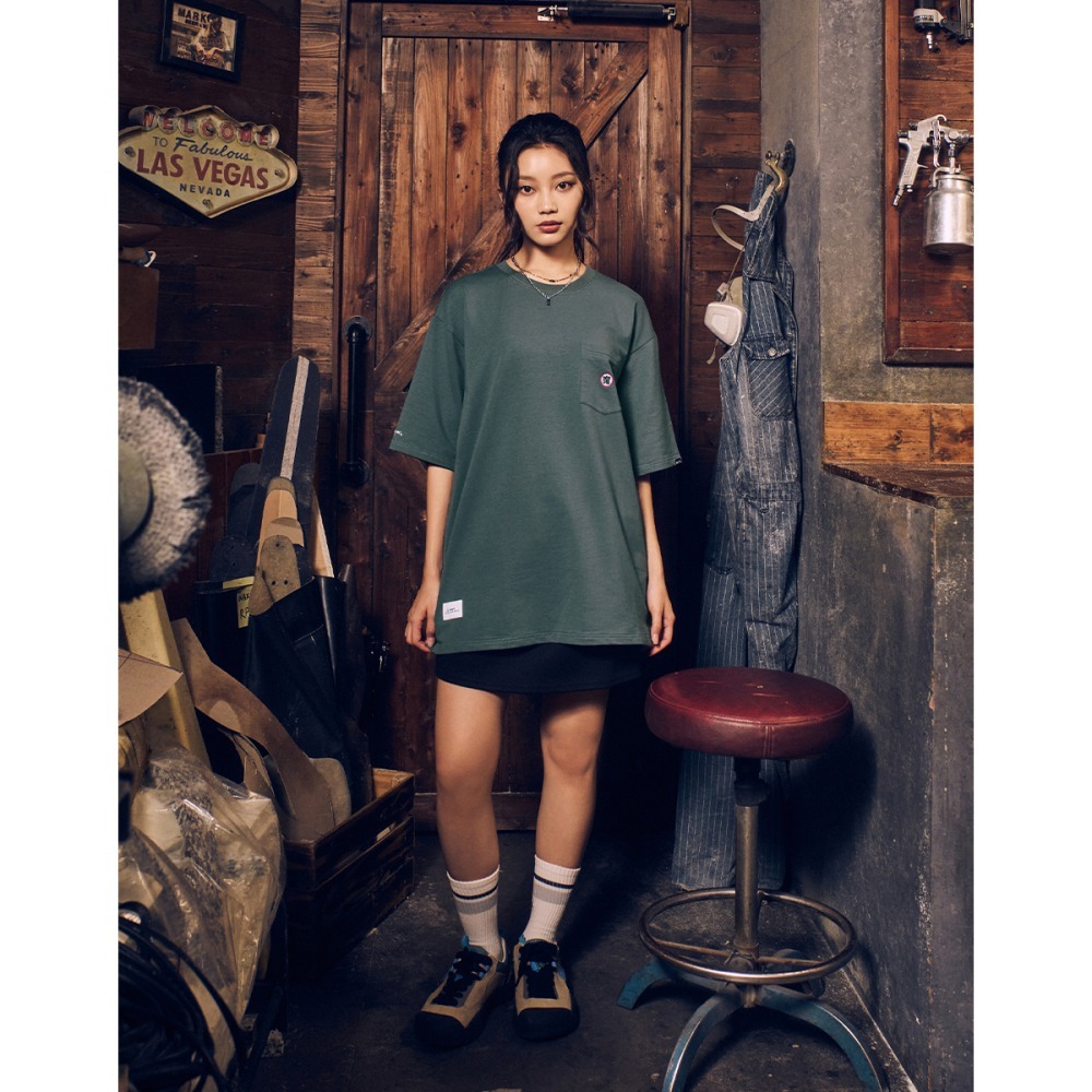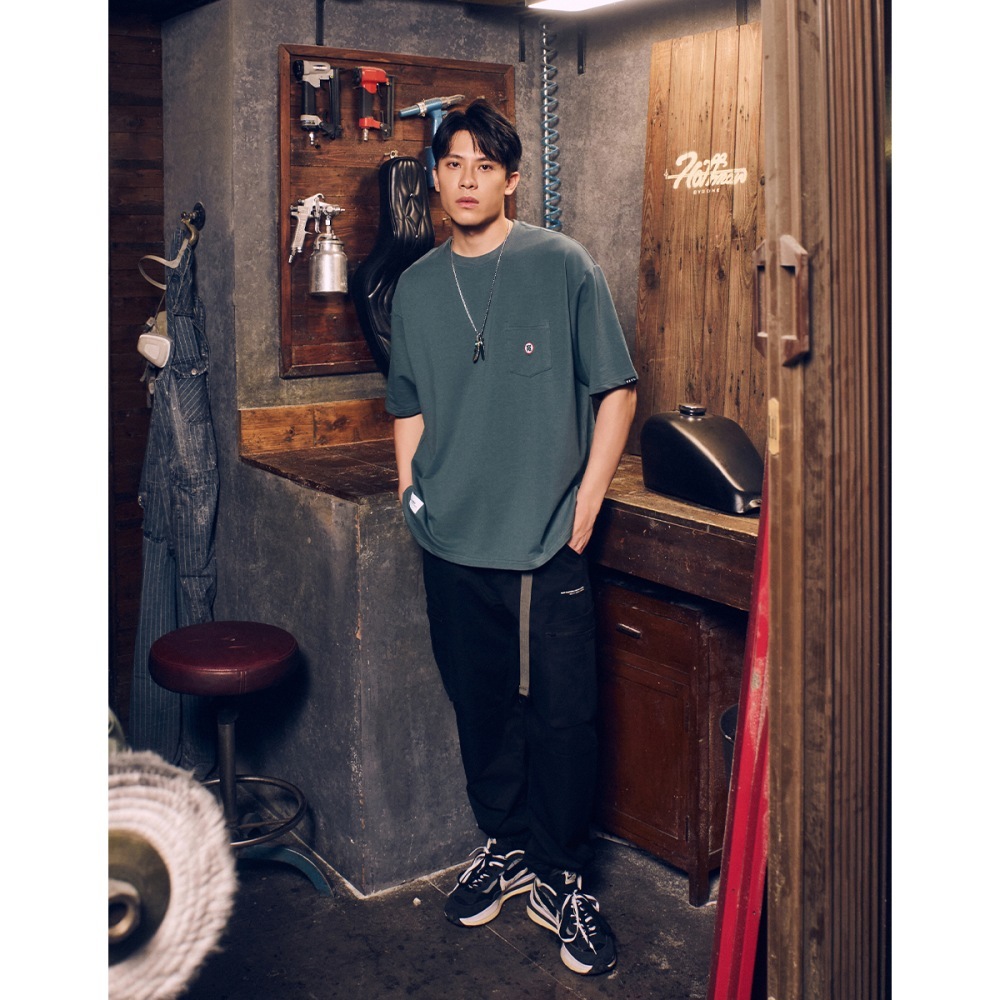 CACO-比克大魔王口袋短T-男女共穿【J1DR004】69灰綠,S|69灰綠,M|69灰綠,L|69灰綠,XL|69灰綠,2LT-Shirtscaco_tw