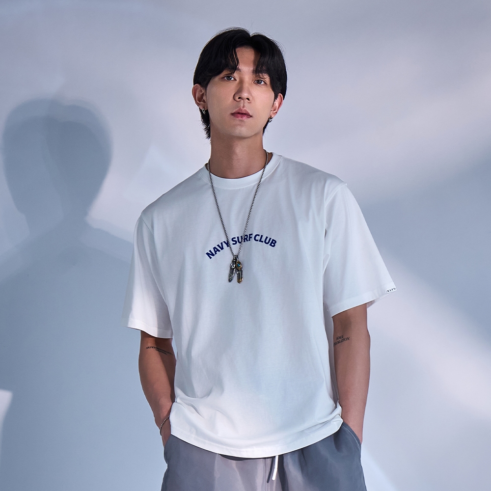 CACO-NAVY涼感海浪背圖短T‧情侶款(二色)-男【J1NA052】74丈青,M|74丈青,L|74丈青,XL|01白,S|01白,M|01白,L|01白,XL|74丈青,ST-Shirtscaco_tw