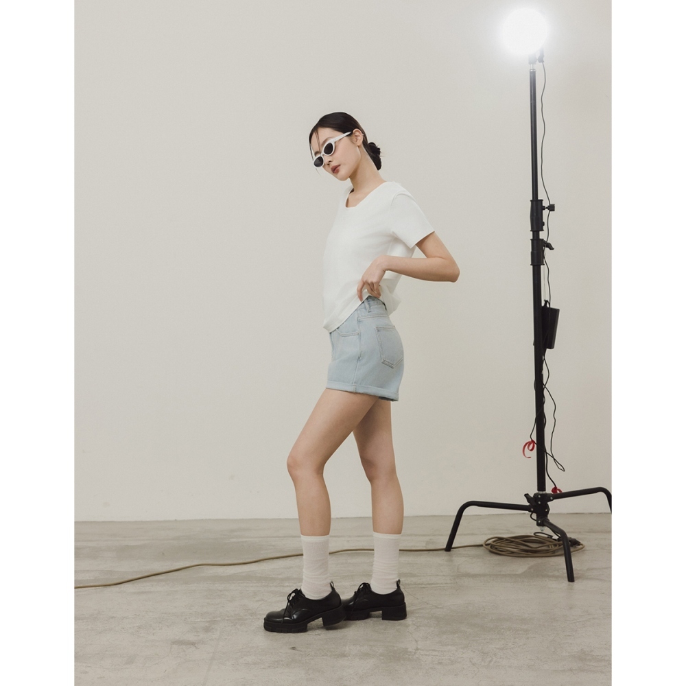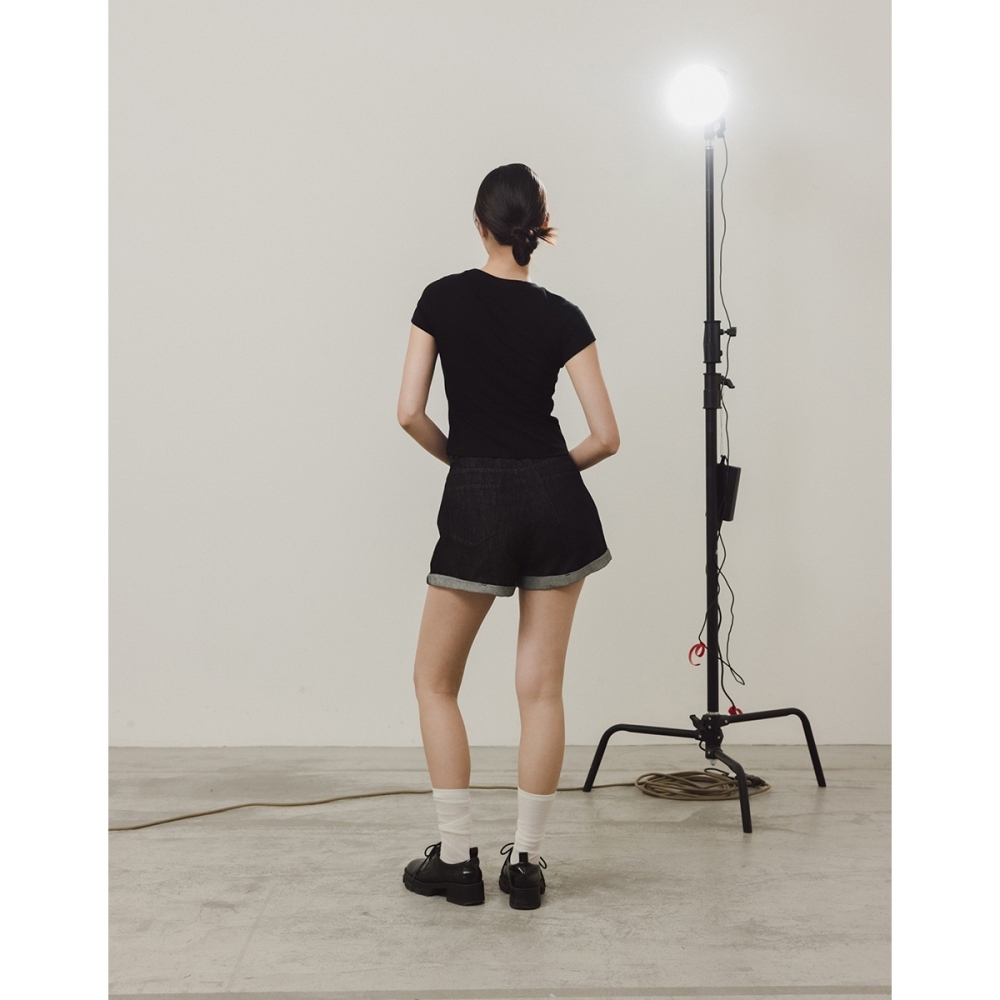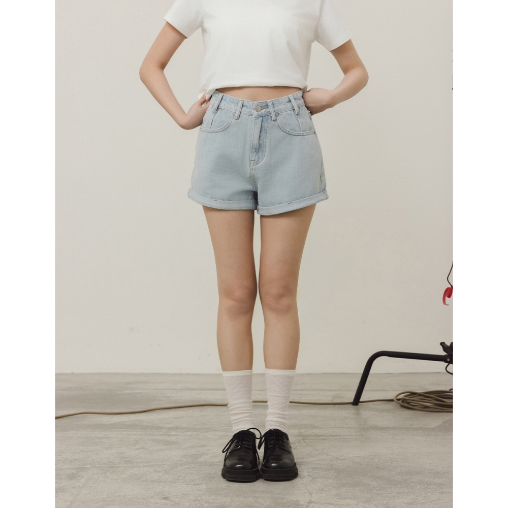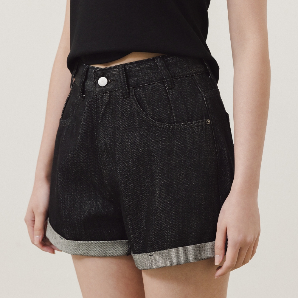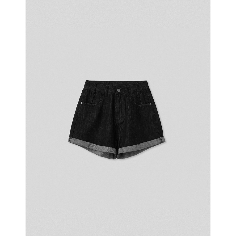CC.DAILY-斜切反褶牛仔短褲(二色)-女【J2CO053】09黑,S|09黑,M|09黑,L|70淺藍,S|70淺藍,M|70淺藍,LShortscaco_tw