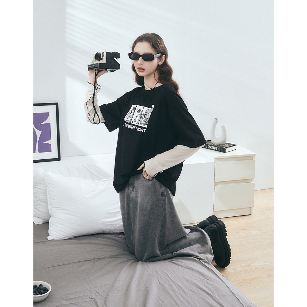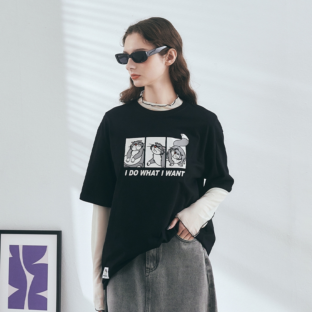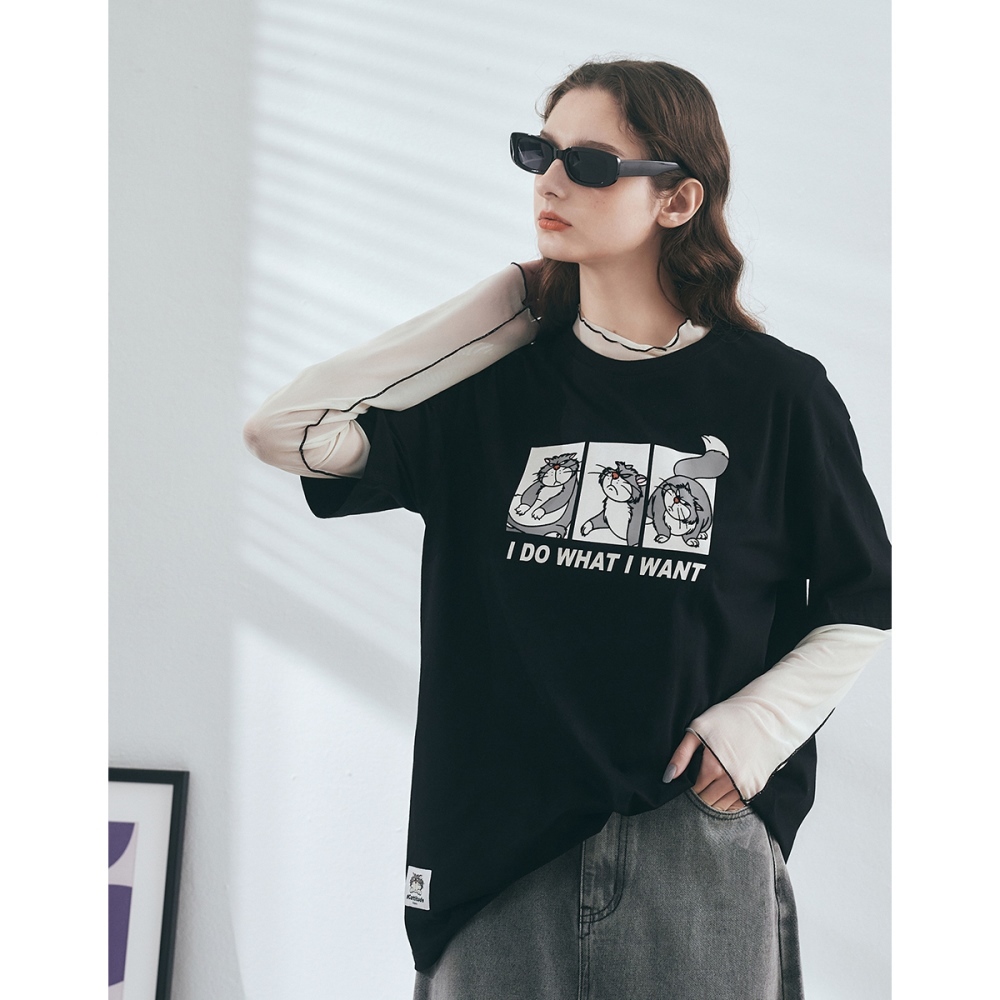 CACO-魯斯佛落肩寬版上衣-男女共穿【J2DI005】09黑,S|09黑,M|09黑,LT-shirtscaco_tw