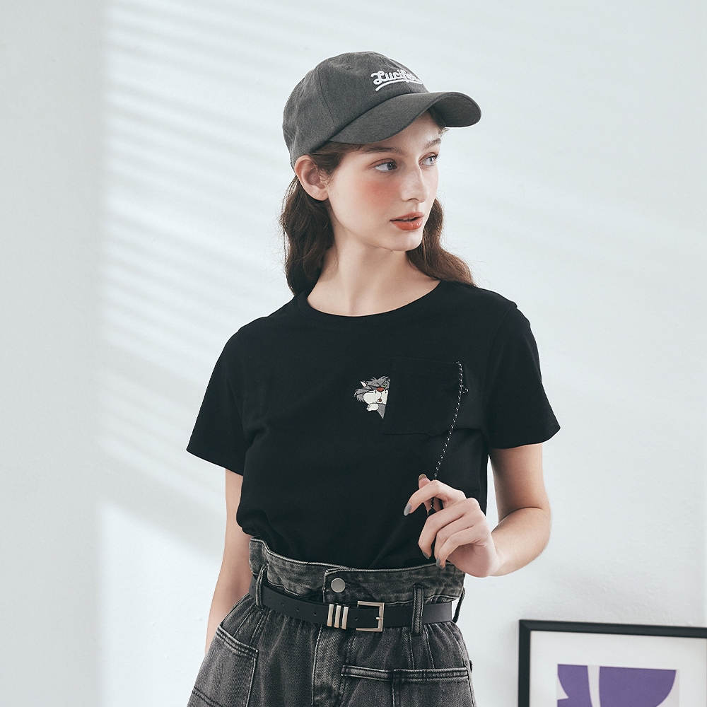 CACO-魯斯佛藏鑰匙口袋短T‧親子款-女【J2DI001】09黑,S|09黑,M|09黑,LT-shirtscaco_tw