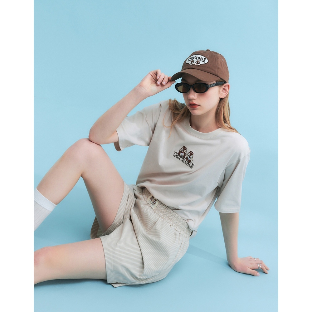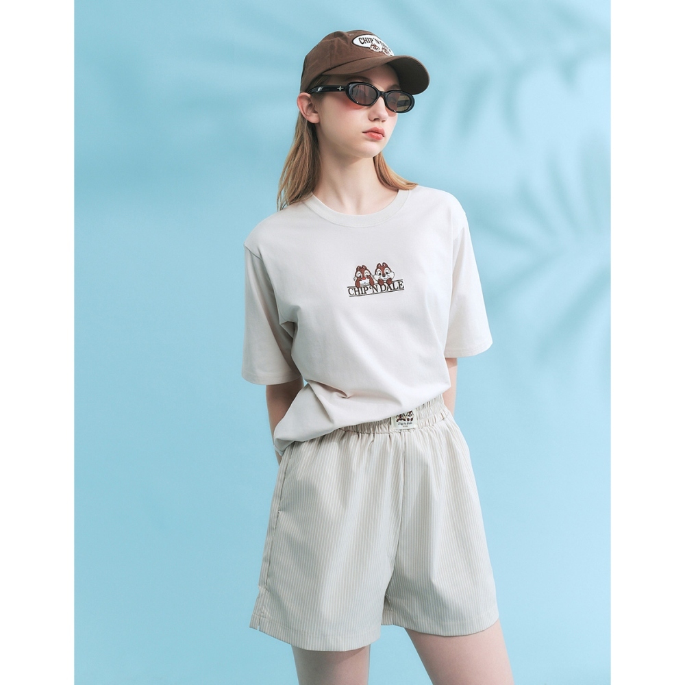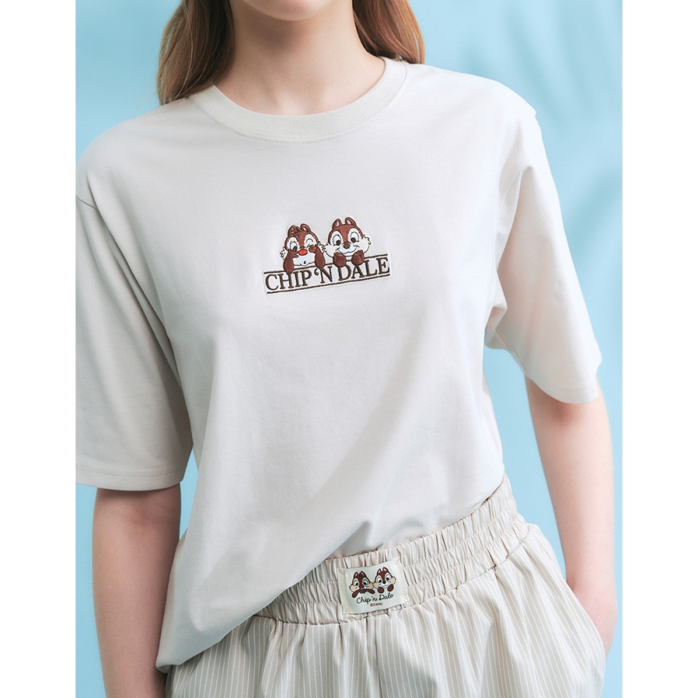 CACO-奇奇蒂蒂刺繡涼感短T‧親子款-男女共穿【J1DI548】27淺杏,XS|27淺杏,S|27淺杏,M|27淺杏,L|27淺杏,XLT-Shirtscaco_tw