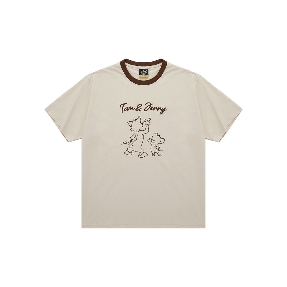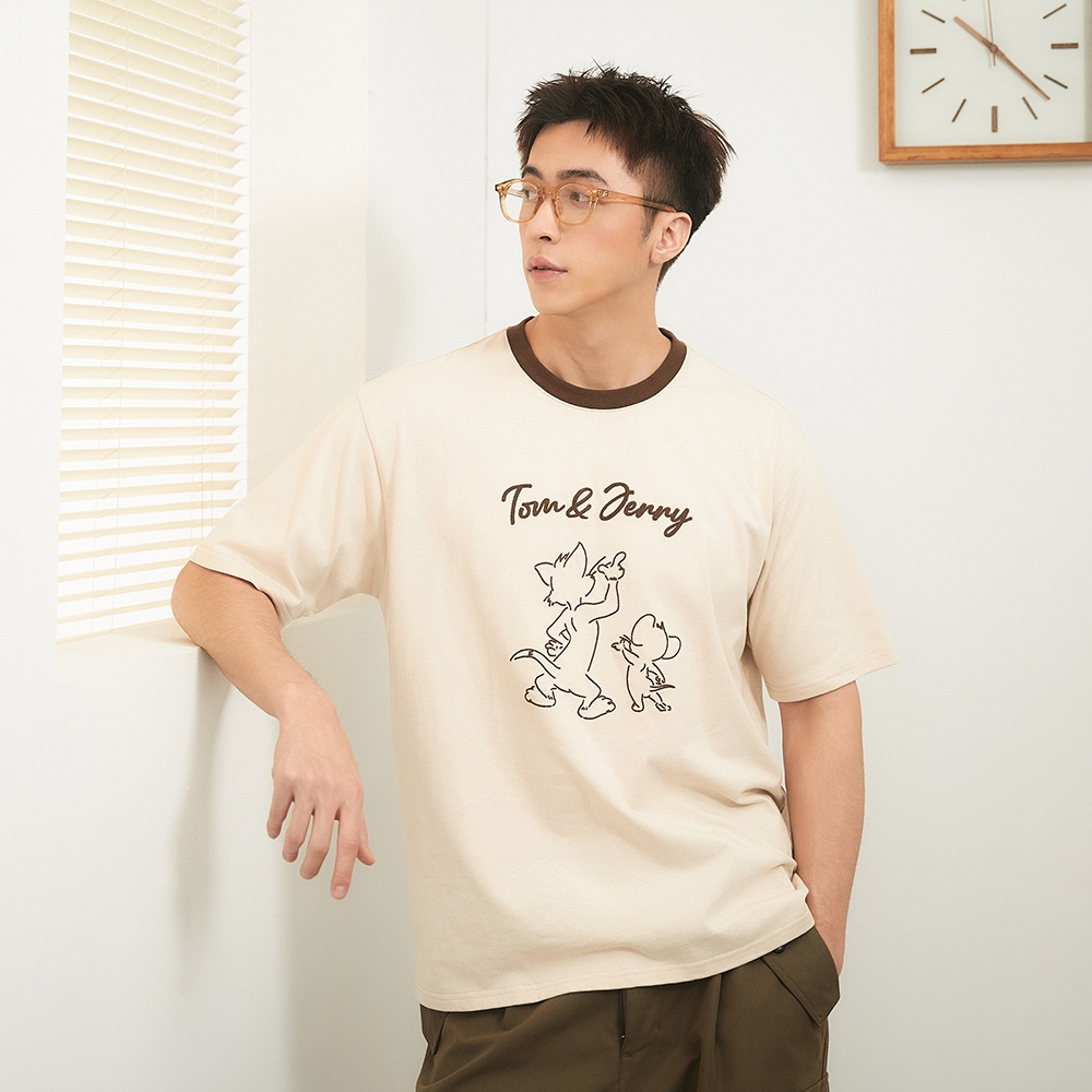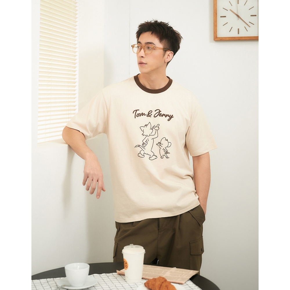 CACO-湯姆貓傑利鼠撞色領短T-男【J1WB005】27淺杏,S|27淺杏,M|27淺杏,LT-Shirtscaco_tw