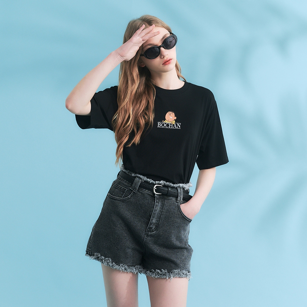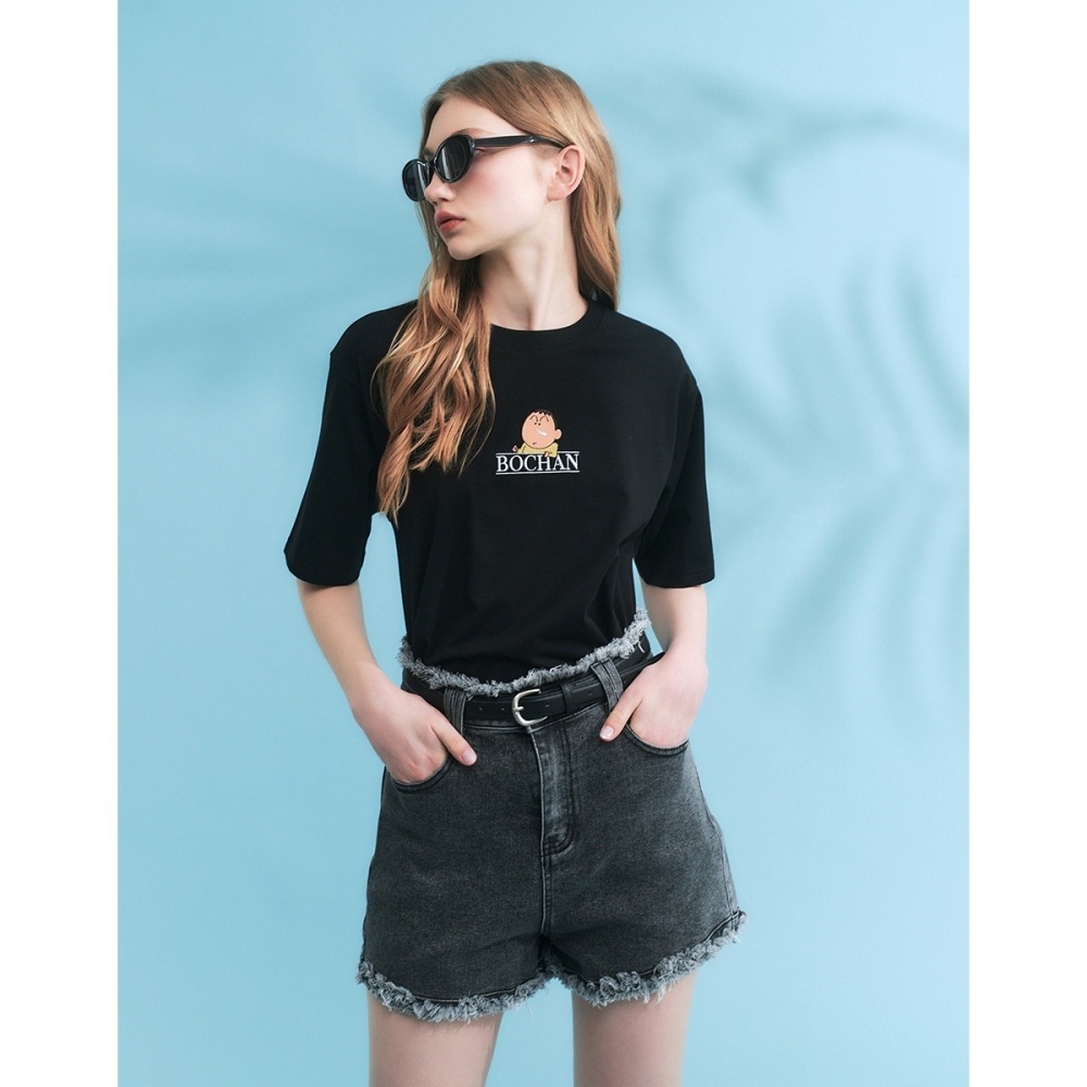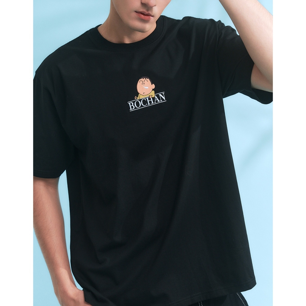 CACO-阿呆刺繡涼感短T-男女共穿【J1SC527】09黑,XS|09黑,S|09黑,M|09黑,L|09黑,XLT-Shirtscaco_tw