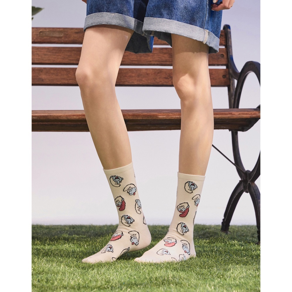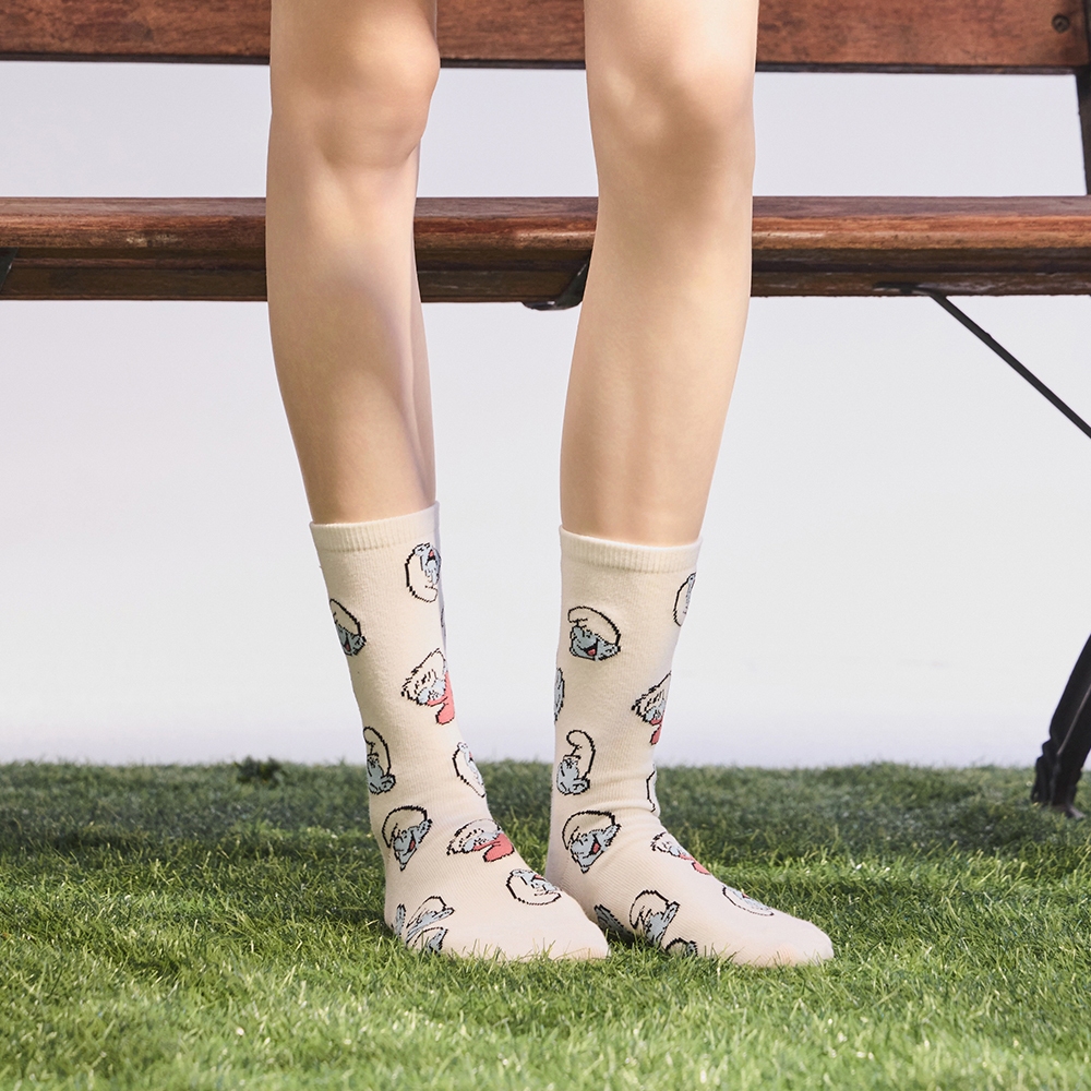 CACO-MIT 藍色小精靈滿版中長襪-女【J2SF016】01白,FSockscaco_tw