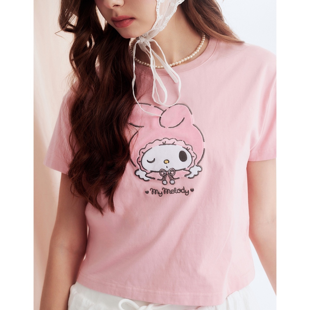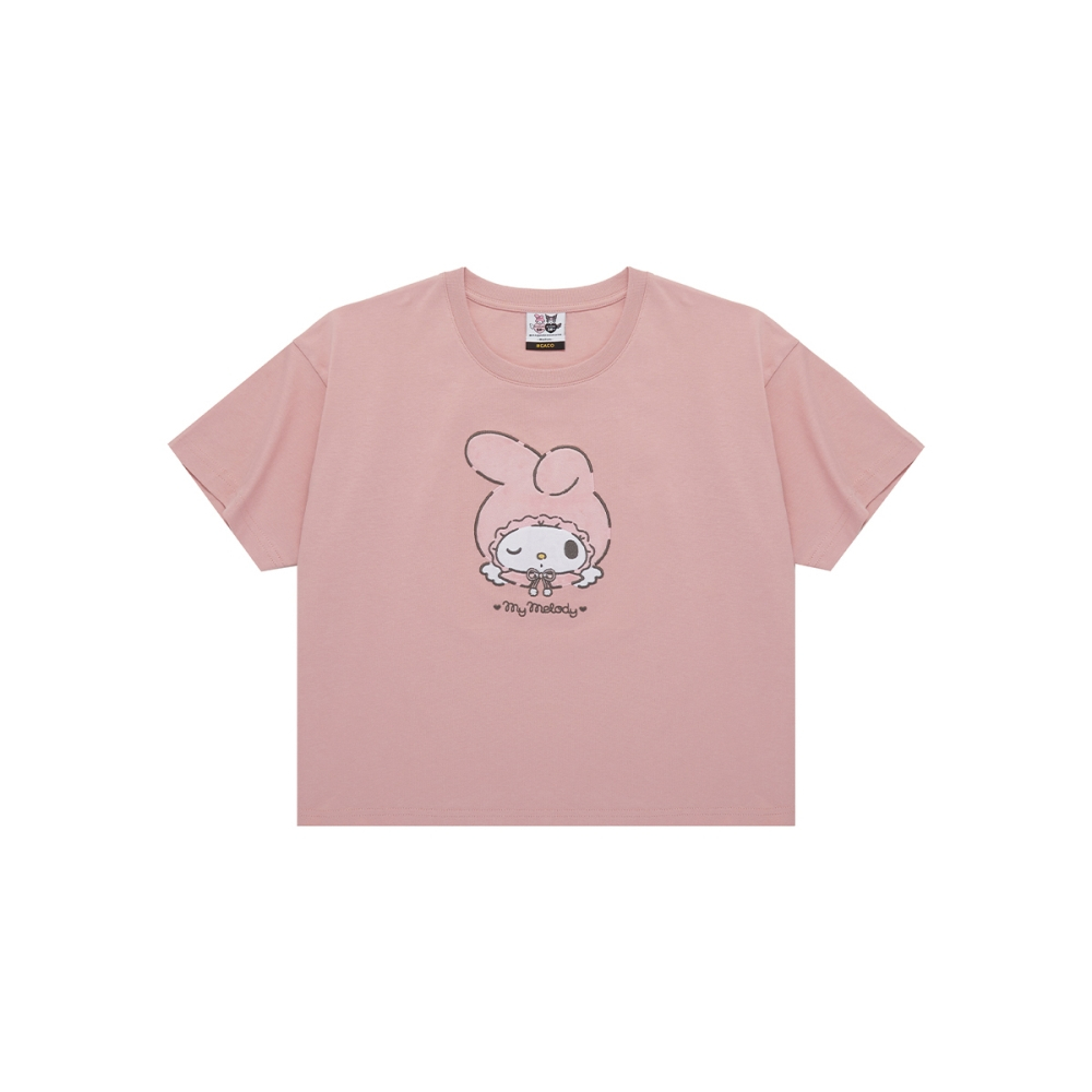 CACO-美樂蒂大臉貼布落肩上衣‧親子款-女【J2SA075】30粉紅,S|30粉紅,MT-shirtscaco_tw