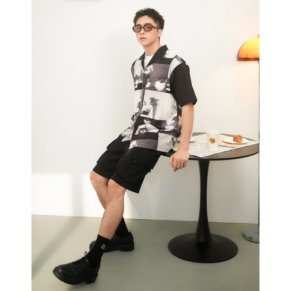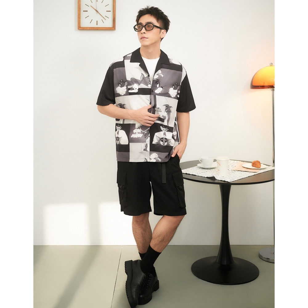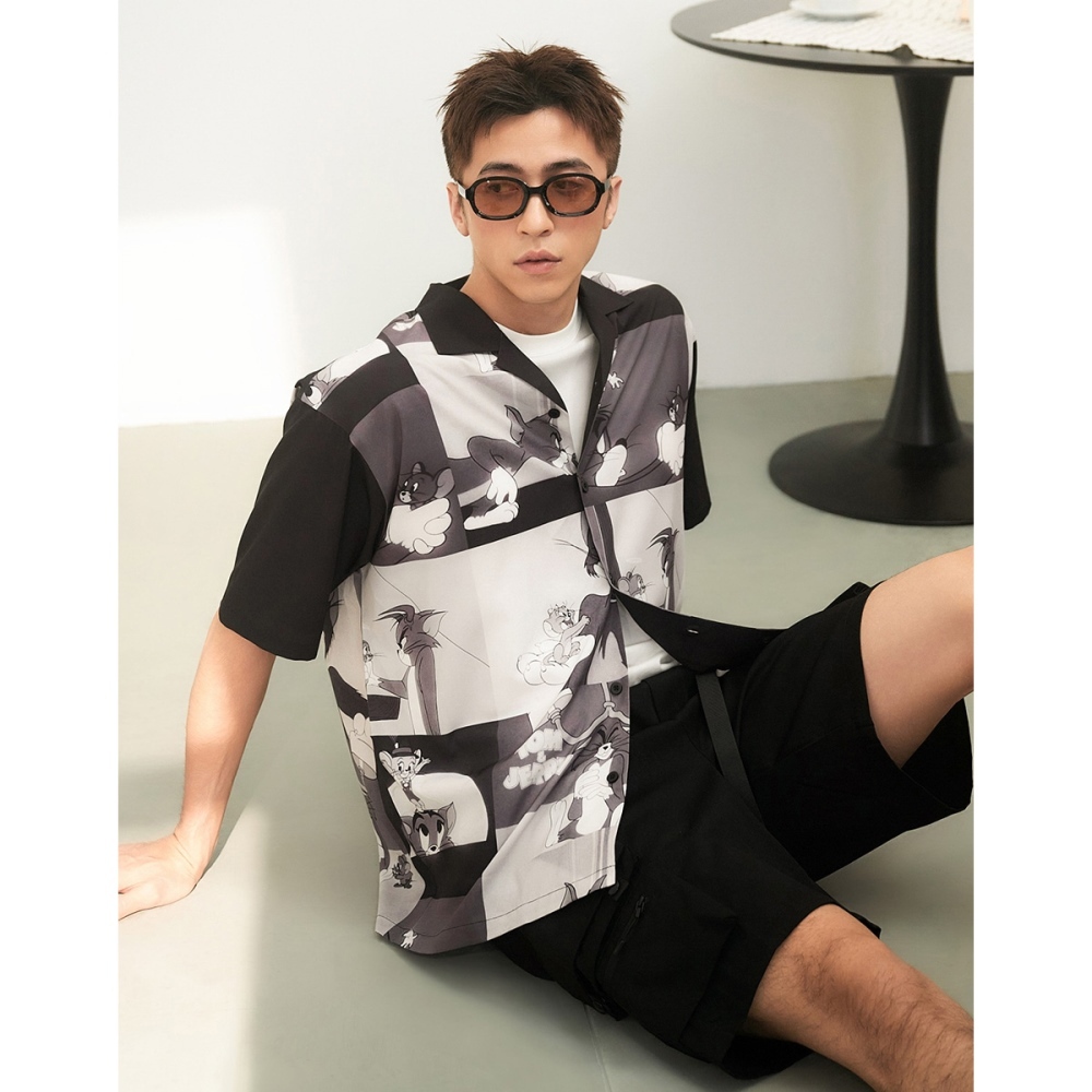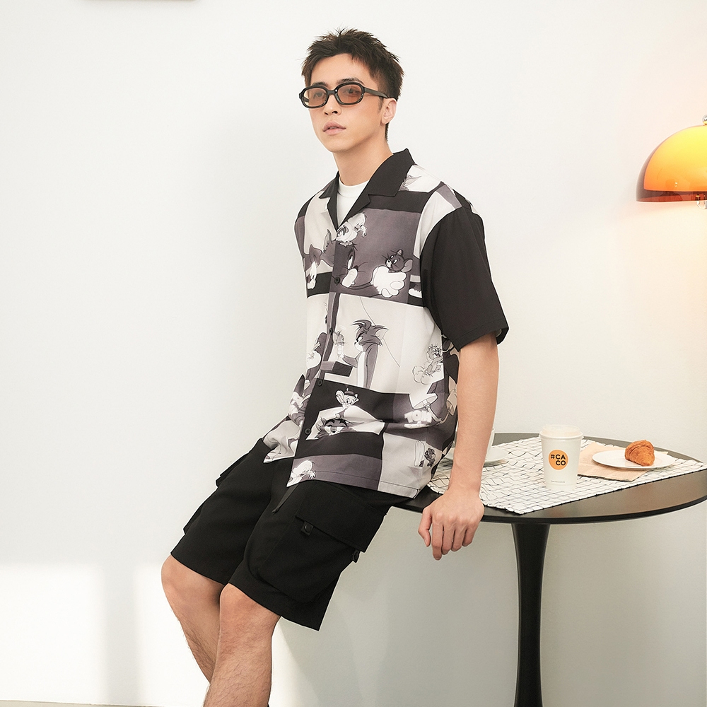 CACO-湯姆貓傑利鼠滿版開襟衫-男【J1WB009】09黑,L|09黑,S|09黑,MShirtscaco_tw