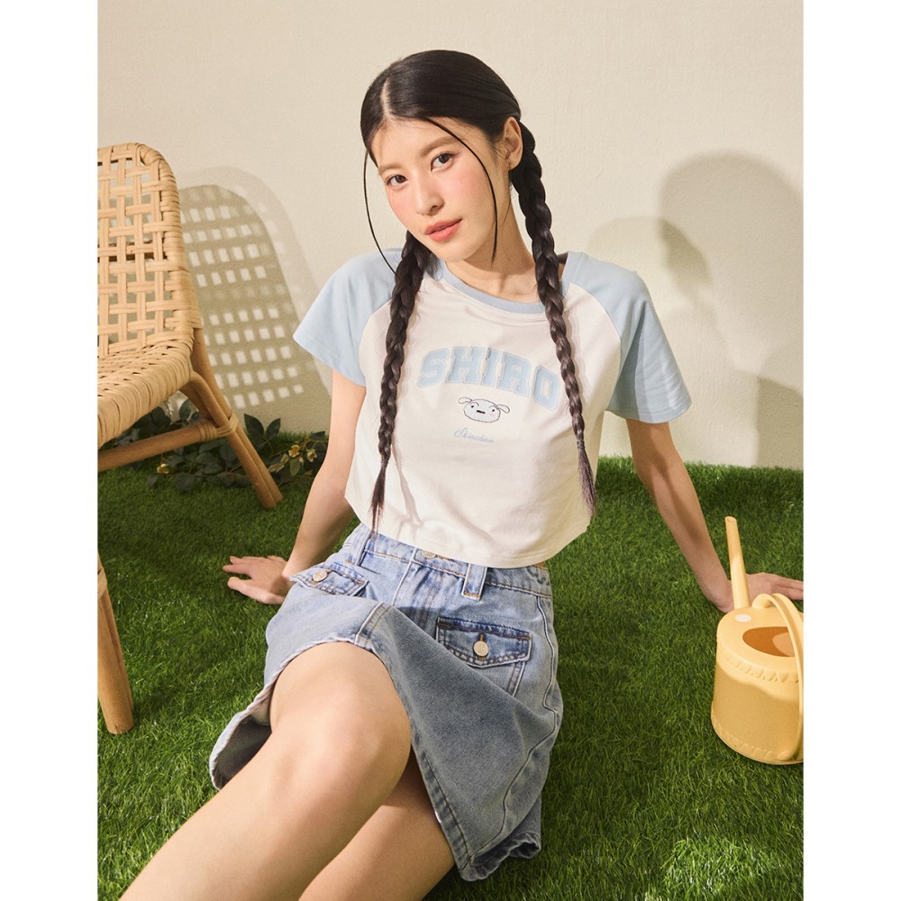 CACO-小白拉克蘭袖撞色短T‧親子款-女【J2SC011】01白,S|01白,MT-shirtscaco_tw
