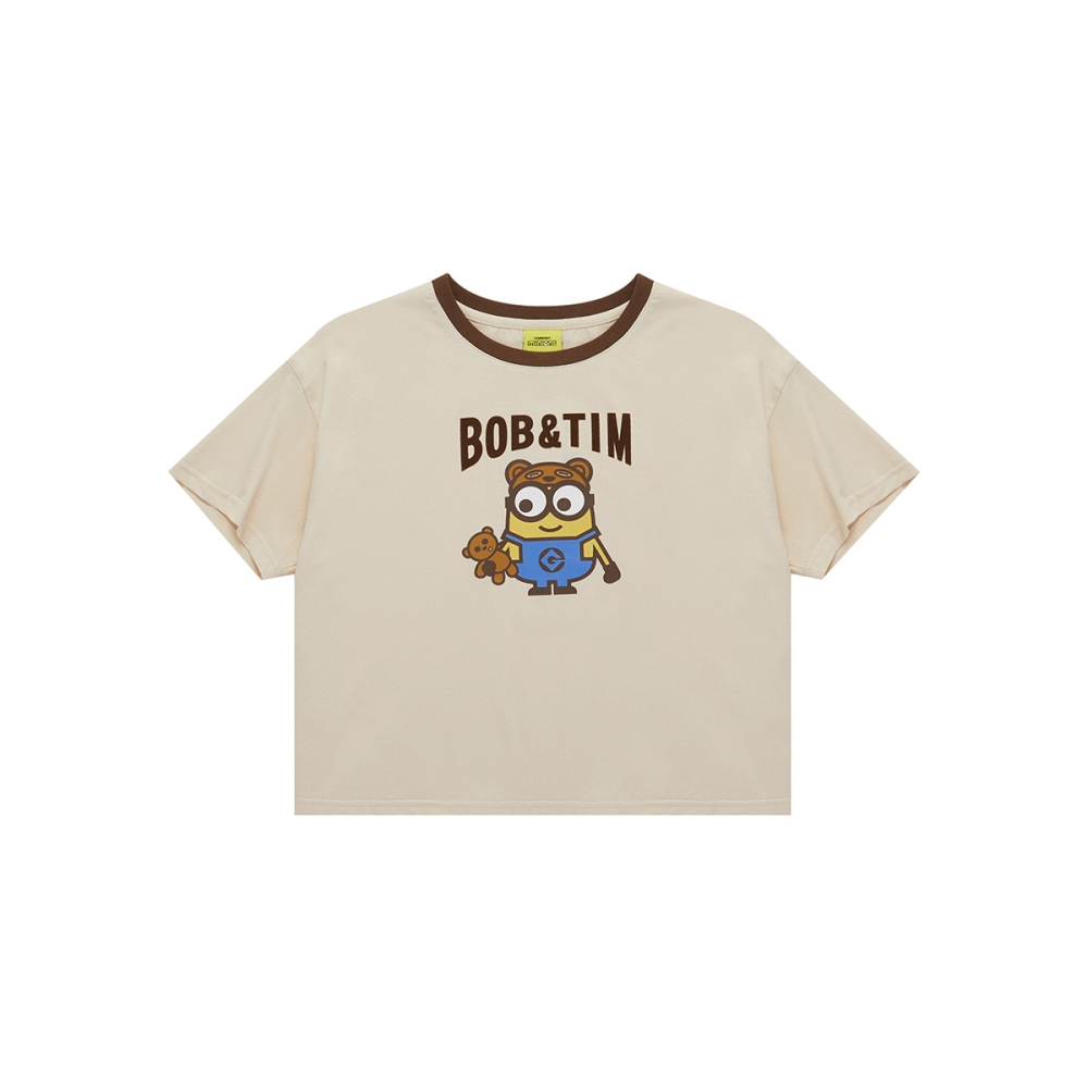 CACO-小小兵撞色植絨上衣‧親子款-女【J2US003】27淺杏,S|27淺杏,MT-shirtscaco_tw