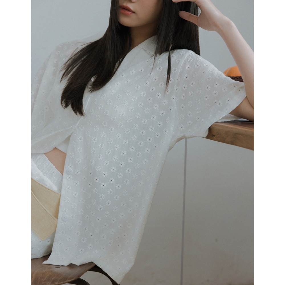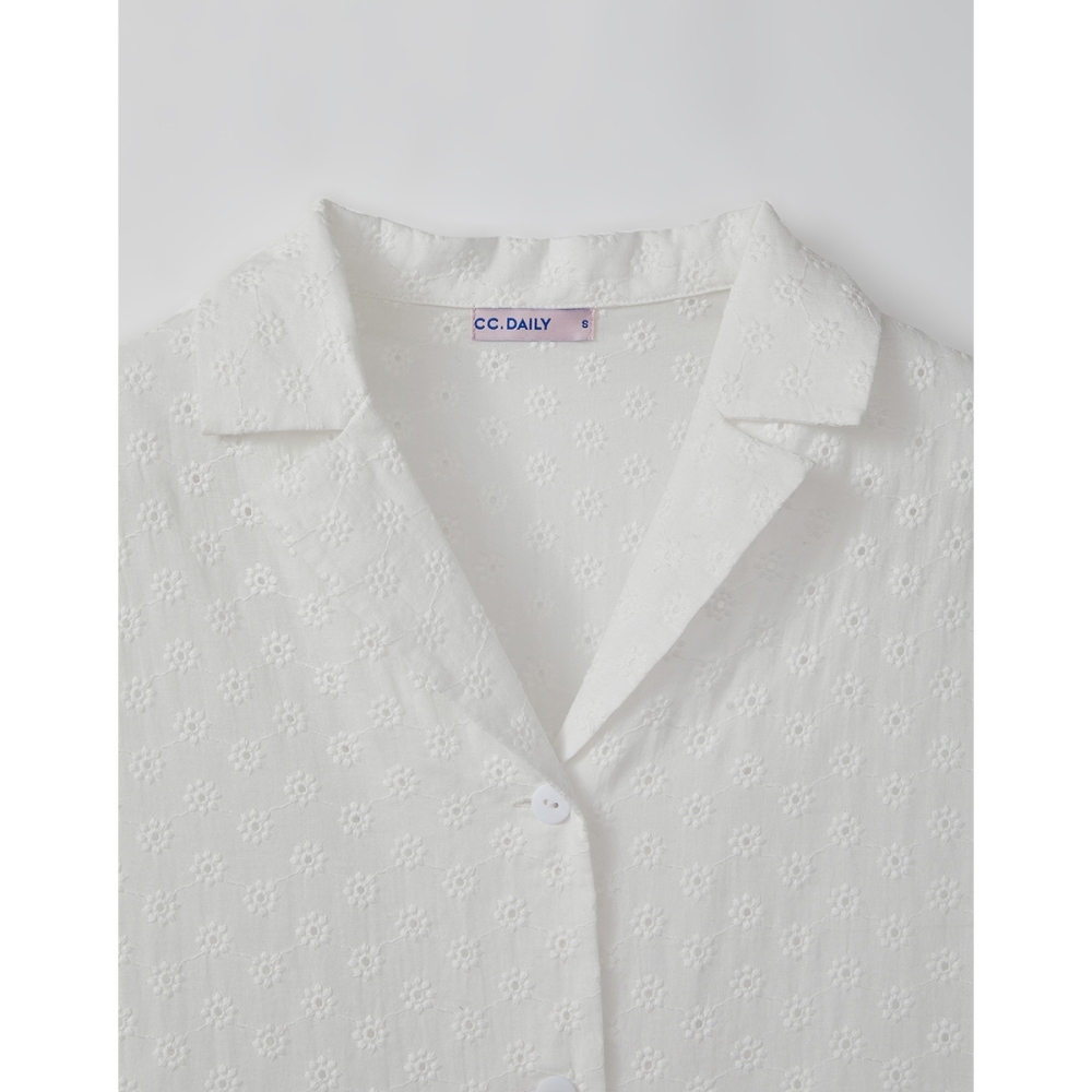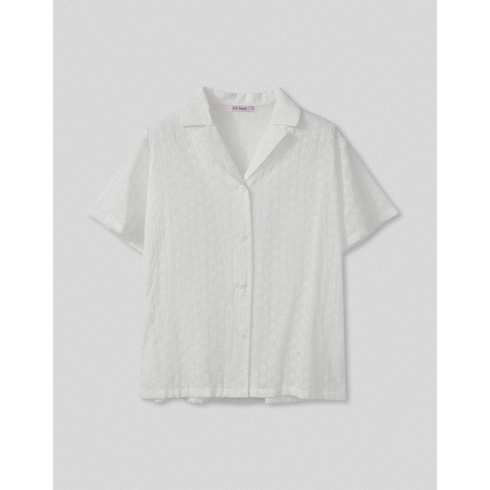 CC.DAILY-皺皺鏤空小花短袖襯衫-女【J2CO023】01白,S|01白,MShirts & Blousescaco_tw