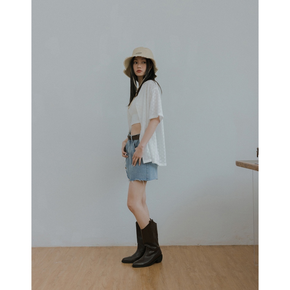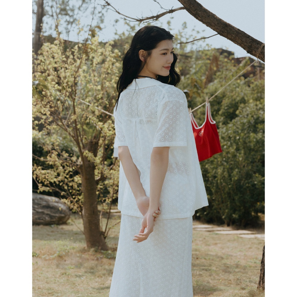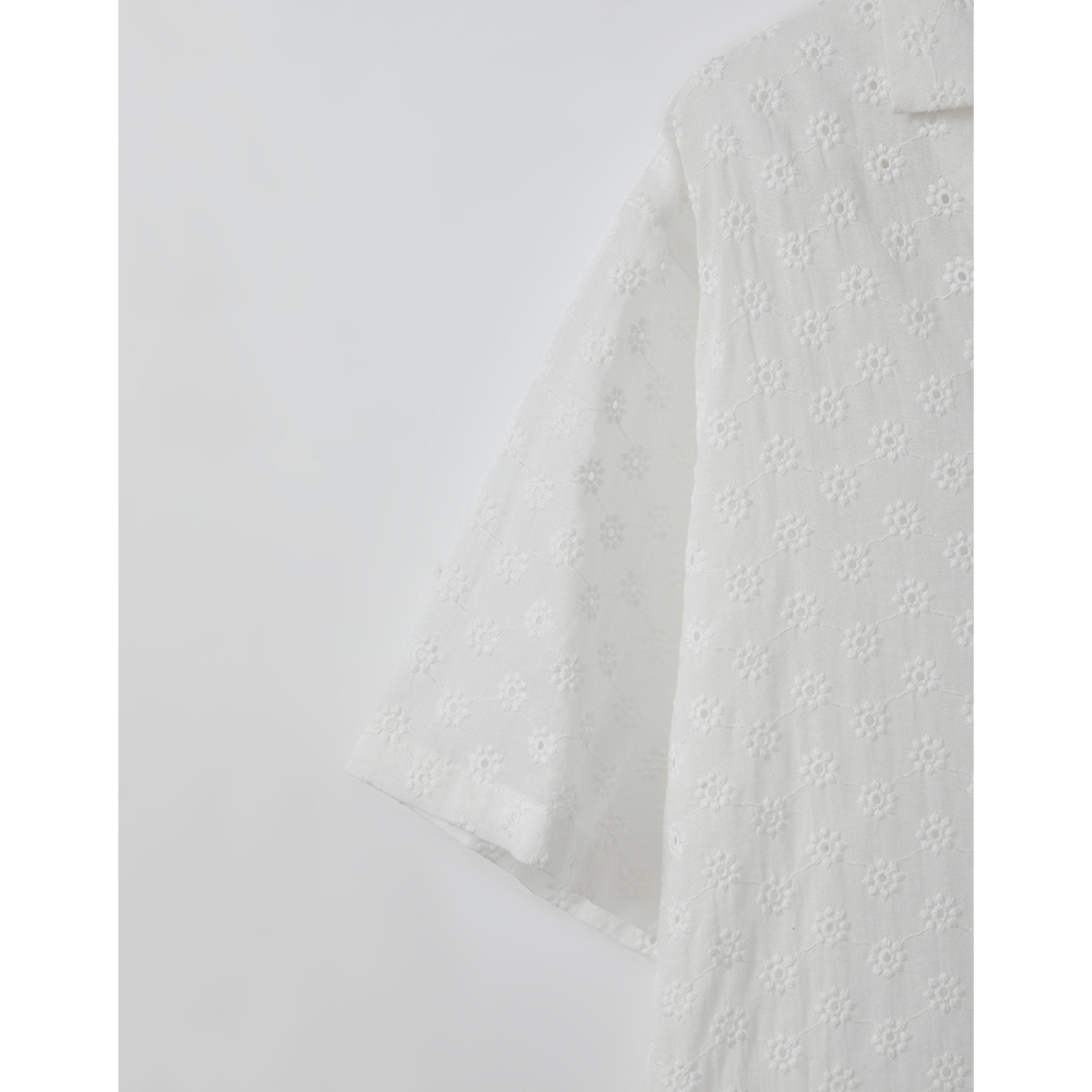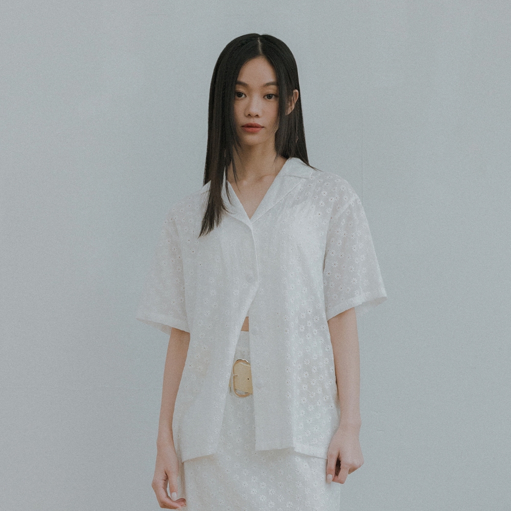 CC.DAILY-皺皺鏤空小花短袖襯衫-女【J2CO023】01白,S|01白,MShirts & Blousescaco_tw
