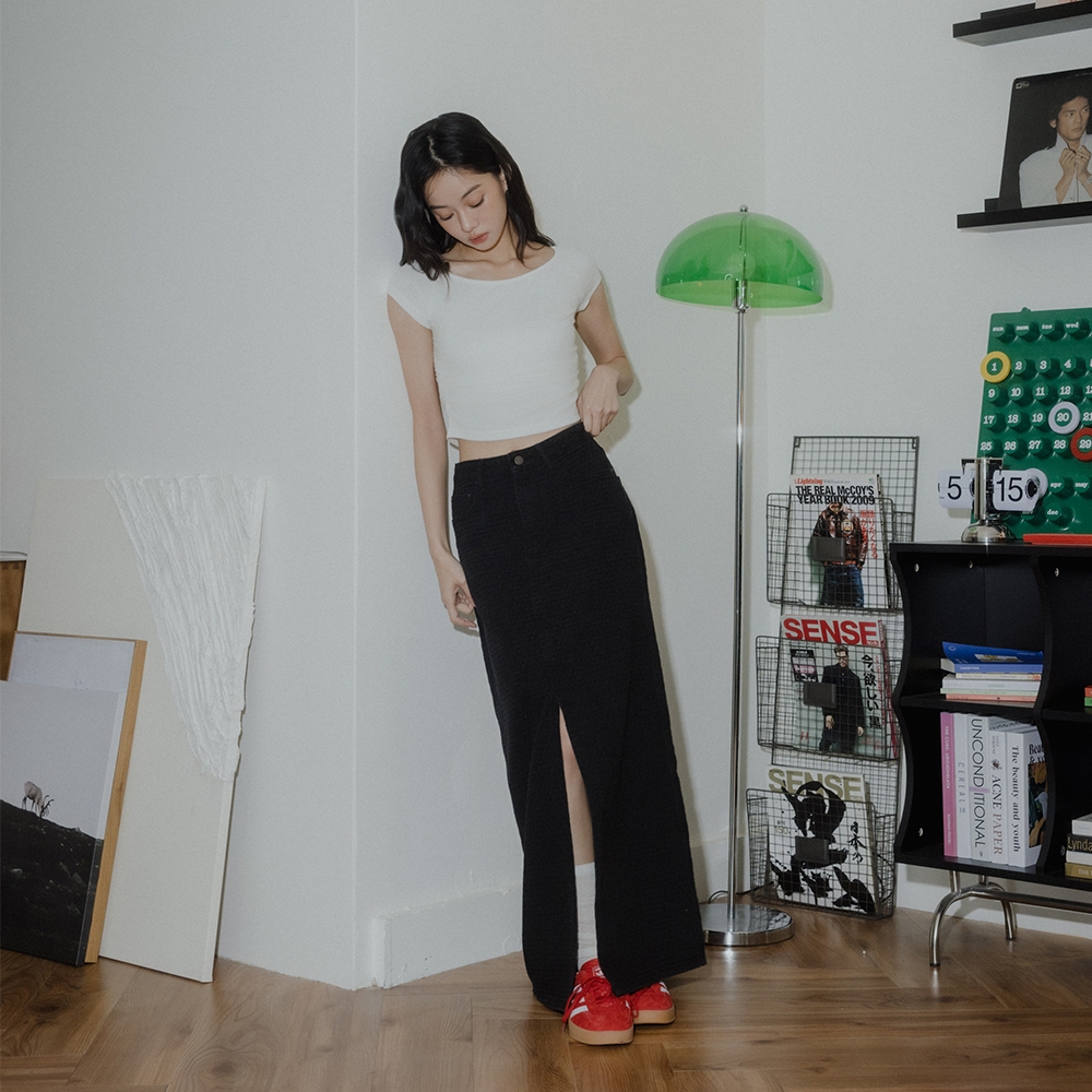 CC.DAILY-緹花顯瘦牛仔長裙(二色)-女【J2CO041】01白,S|01白,M|01白,L|09黑,S|09黑,M|09黑,Lcaco_tw