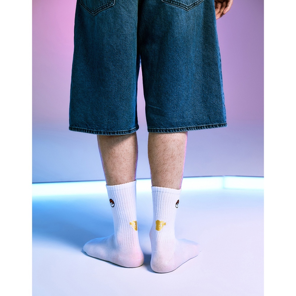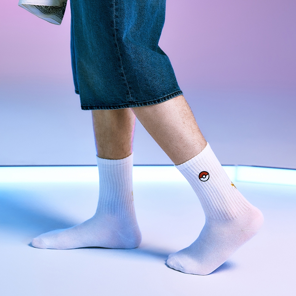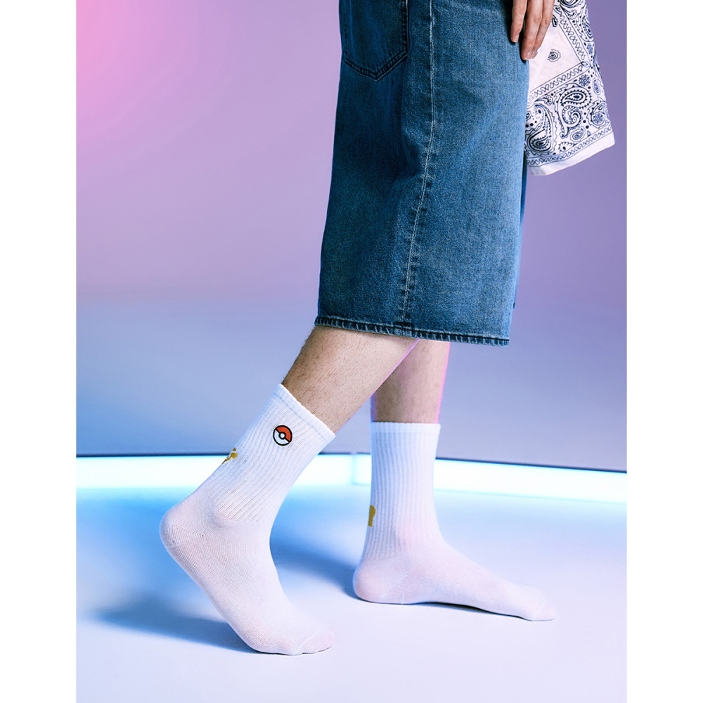 CACO-MIT 精靈球電繡中長襪-男【J1PK008】01白,Fcaco_tw