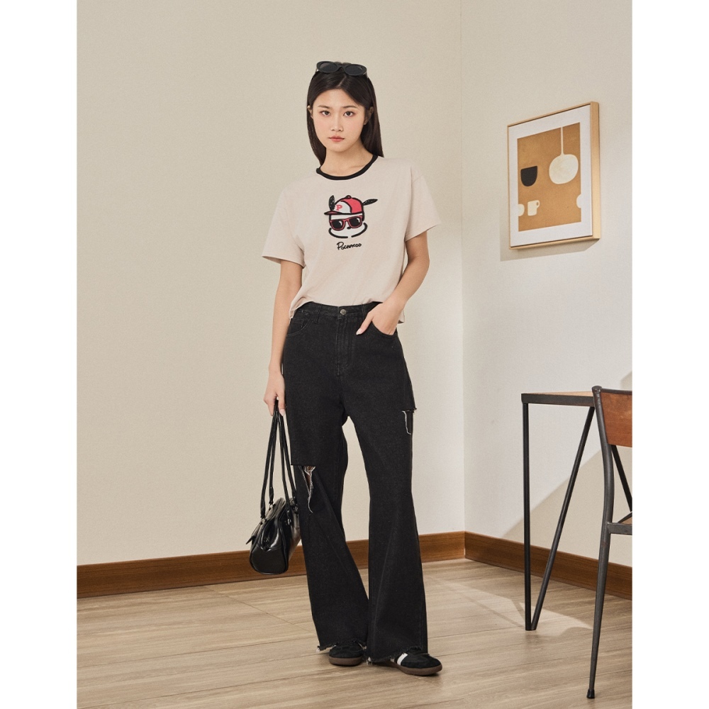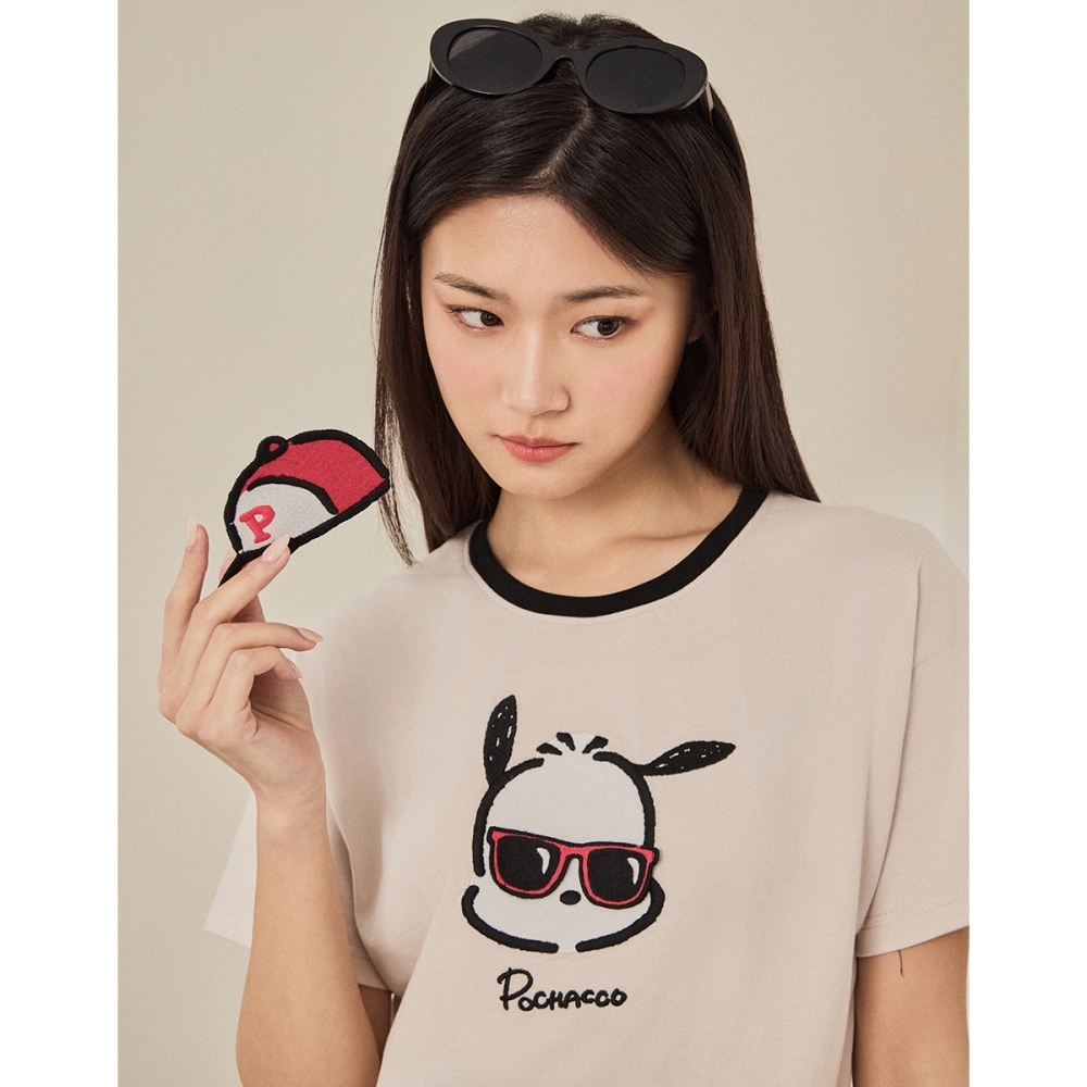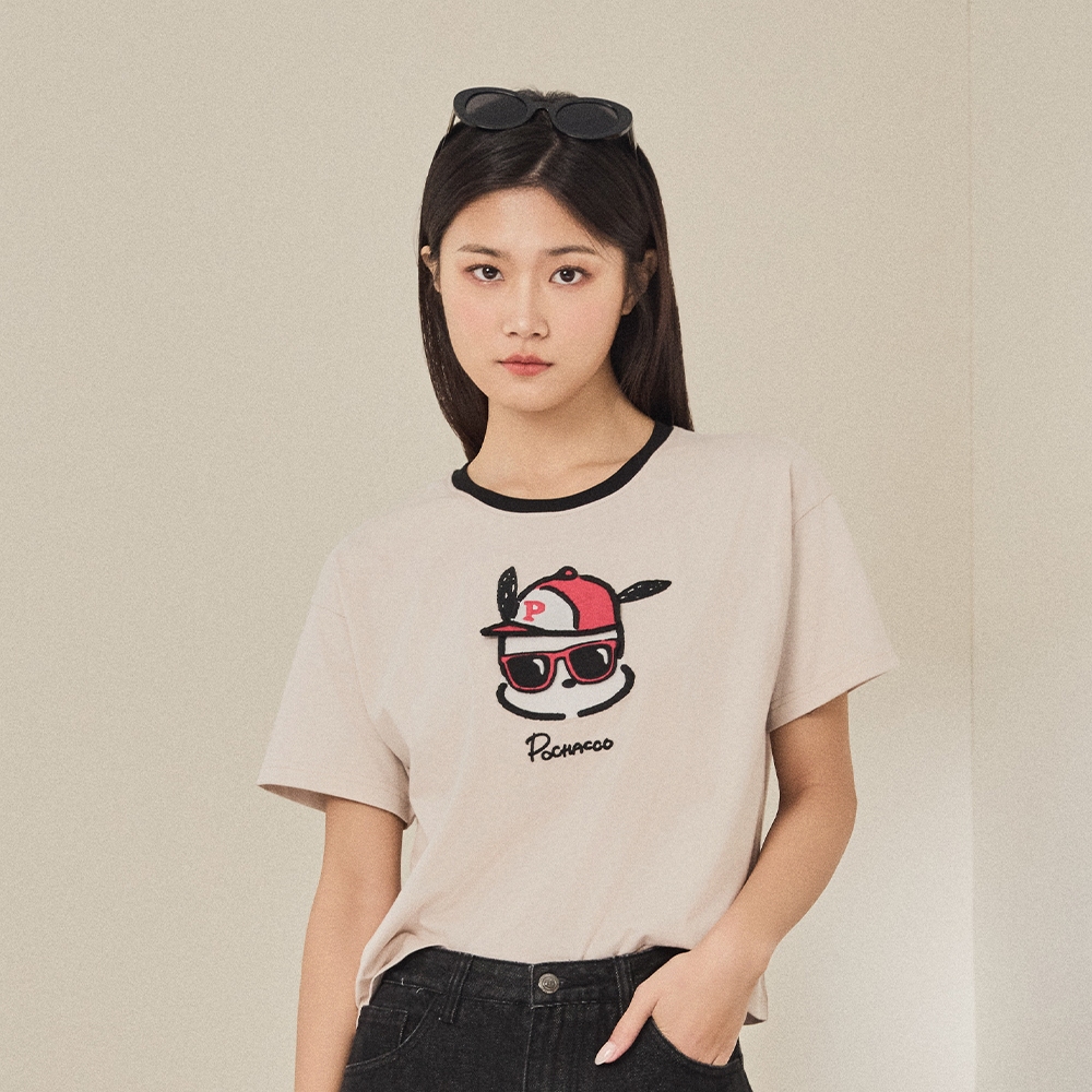 CACO-帕恰狗撞領落肩上衣‧親子款-女【J2SA015】27淺杏,S|27淺杏,MT-shirtscaco_tw