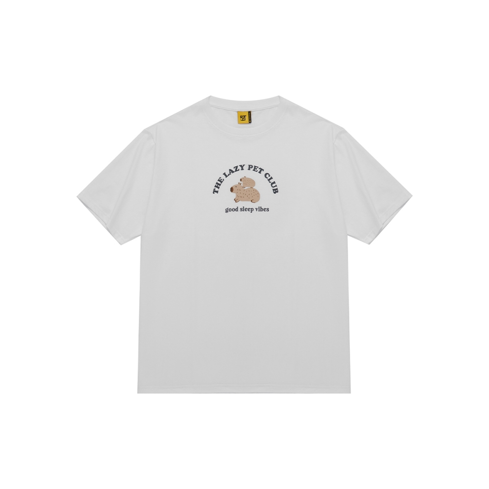 CACO-MIT 慵懶水豚睡覺印花短T-男【J1CA508】01白,XS|01白,S|01白,M|01白,L|01白,XLT-Shirtscaco_tw