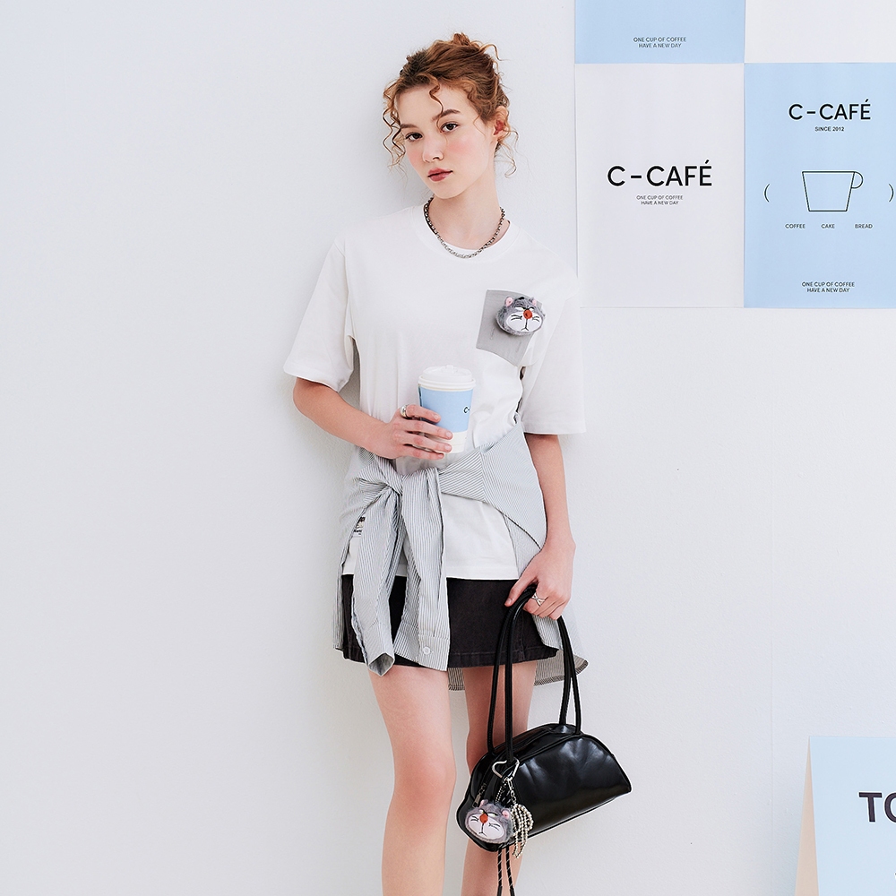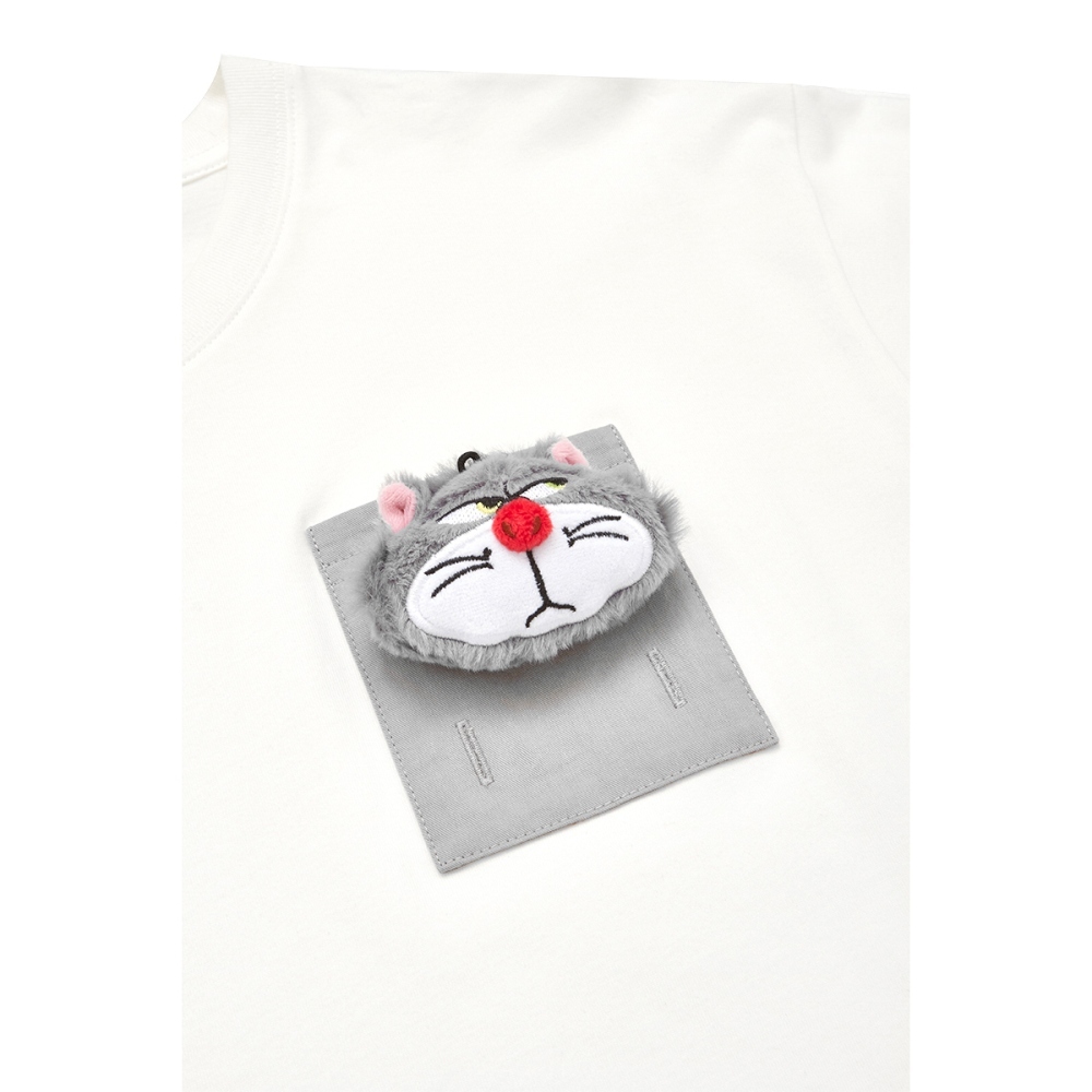 CACO-魯斯佛絨毛公仔口袋短T-男女共穿【J1DI043】01白,XL|01白,XS|01白,S|01白,M|01白,LT-Shirtscaco_tw