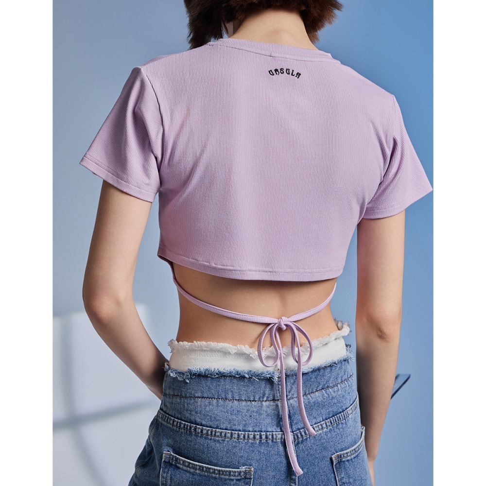 CACO-烏蘇拉合身綁繩上衣-女【J2DI050】80淺紫,S|80淺紫,MT-shirtscaco_tw