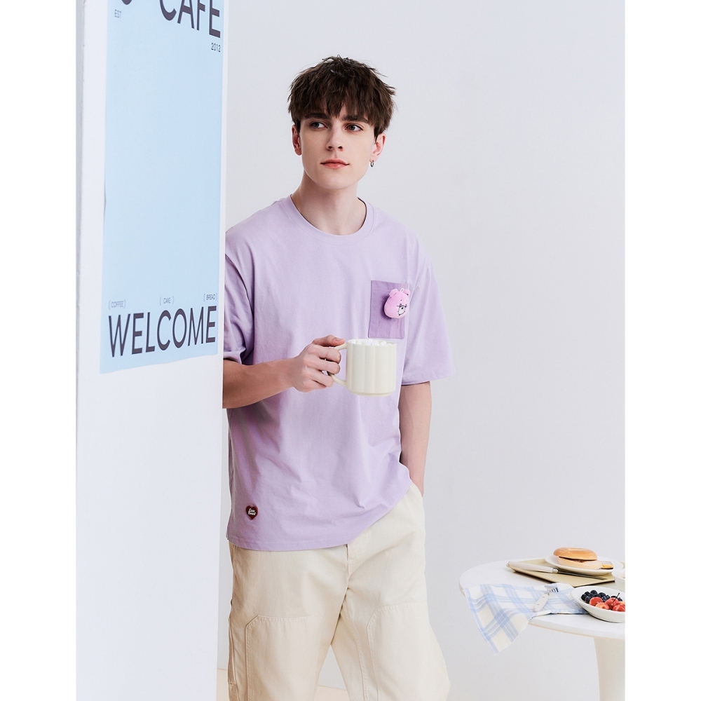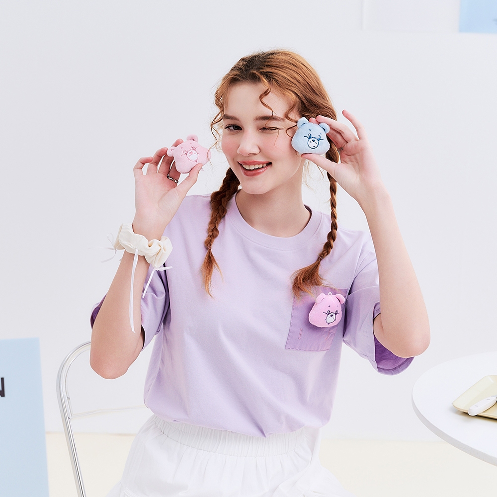 CACO-Share Bear絨毛公仔短T-男女共穿【J1CB004】80淺紫,XS|80淺紫,S|80淺紫,M|80淺紫,L|80淺紫,XLT-Shirtscaco_tw