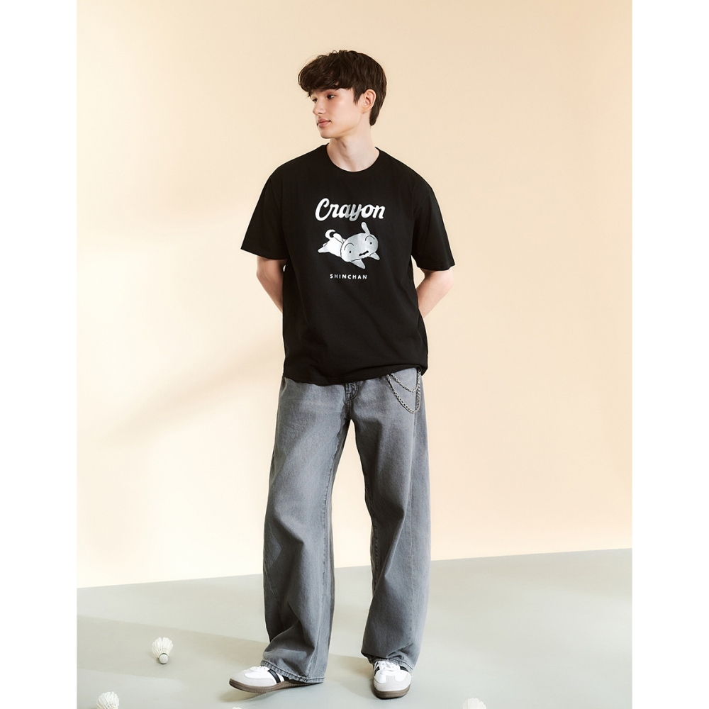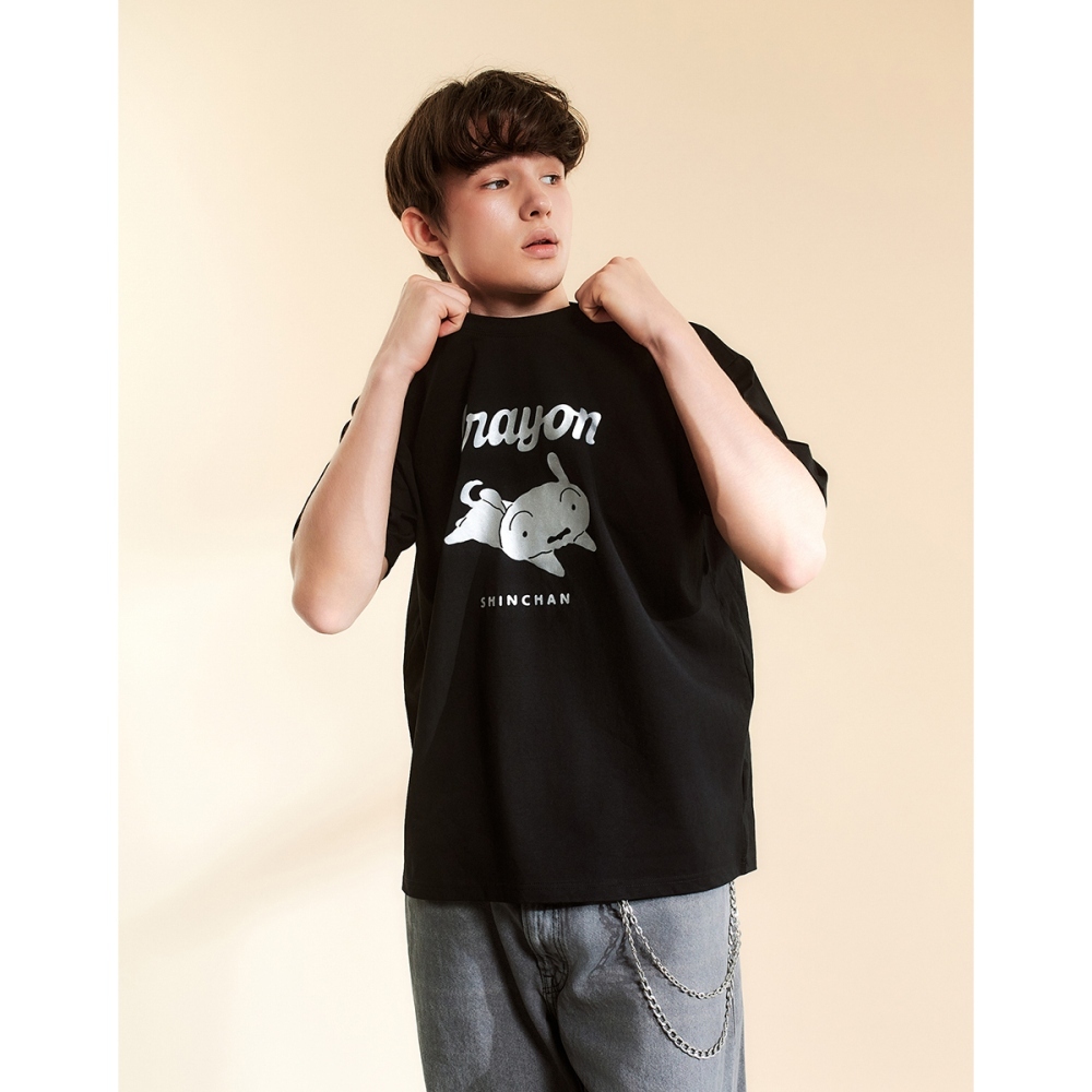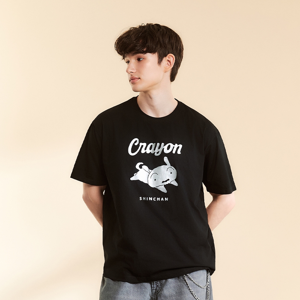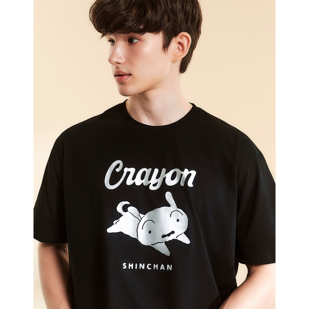 CACO-小白燙銀印花涼感短T-男【J1SC033】09黑,S|09黑,M|09黑,L|09黑,XLT-Shirtscaco_tw