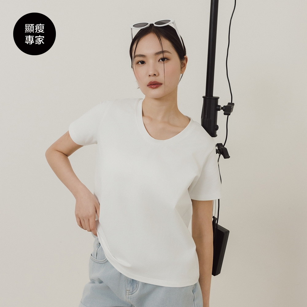 CC.DAILY-正肩低領寬鬆顯瘦T(二色)-女【J2CO060】01白,S|01白,M|01白,L|09黑,S|09黑,M|09黑,LT-shirtscaco_tw