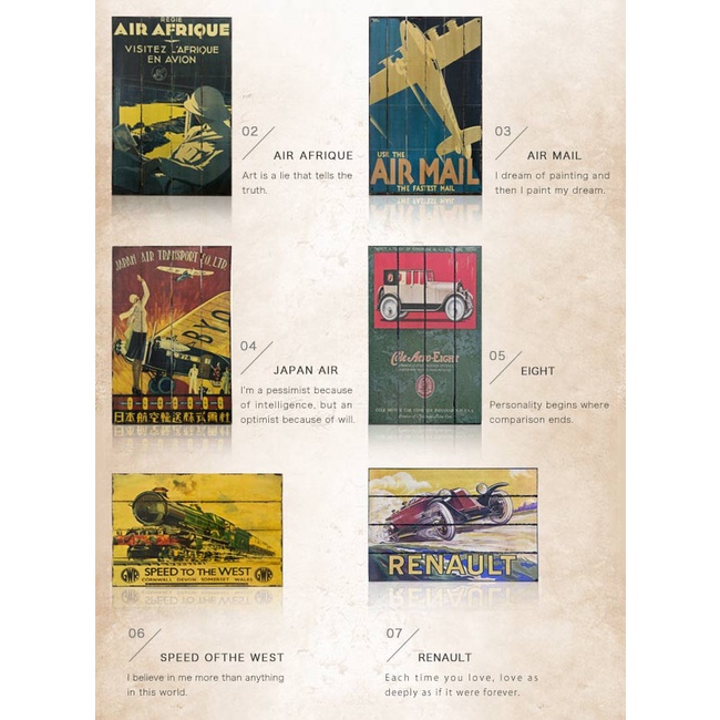 復古工業風|ALMI|PAINTING-EXPLORER 60X100 木板畫 7款可選|下殺75折|免運活動中MONACO|AIR AFRIQUE|AIR MAIL|JAPAN AIR|EIGHT|SPEED OF THE WEST|RENAULTPhoto Frames & Wall DecorationC’est Chic潮傢俬