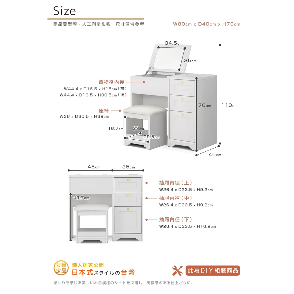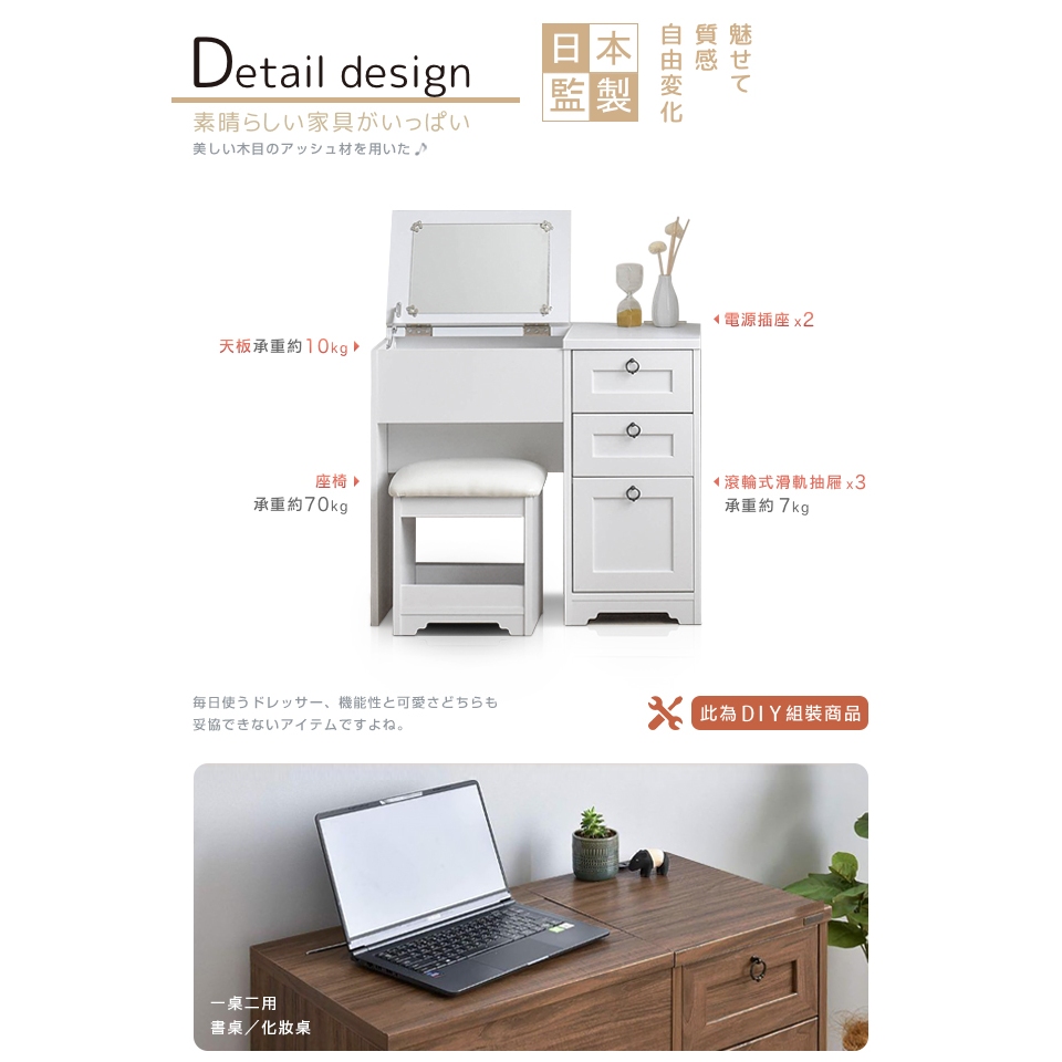 日本原創設計|Sato|ANRI筱日子化妝三抽桌椅組‧幅80cm(樸素白)|原價5980特價4580|組裝費500元日本原創設計|Sato|ANRI筱日子化妝三抽桌椅組‧幅80cm(樸素白)|原價5980特價4580|組裝費500元Desks & TablesC’est Chic潮傢俬